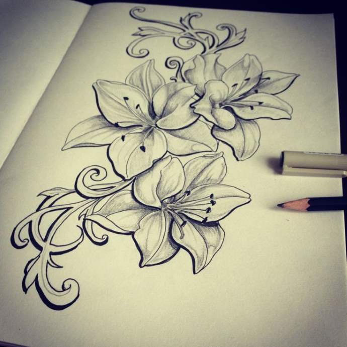 En regardant les dessins de lis pour les tatouages, vous vous rendrez immédiatement compte que ces images ressemblent en réalité aux contours réels d'une fleur envoûtante. Certaines personnes préfèrent choisir des motifs de tatouage avec un lis, ce qui est complètement irréaliste, mais porte une caractéristique positive. Les styles d'image les plus courants pour les lis sont l'aquarelle, la nouvelle école et la tradition. Mais il y a aussi d'excellents résultats dus aux expériences de l'alternative. Vous devez examiner soigneusement le croquis du tatouage imprimé, de sorte que même après de nombreuses années, il ne cesse de vous correspondre.
