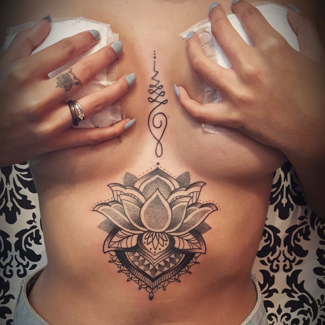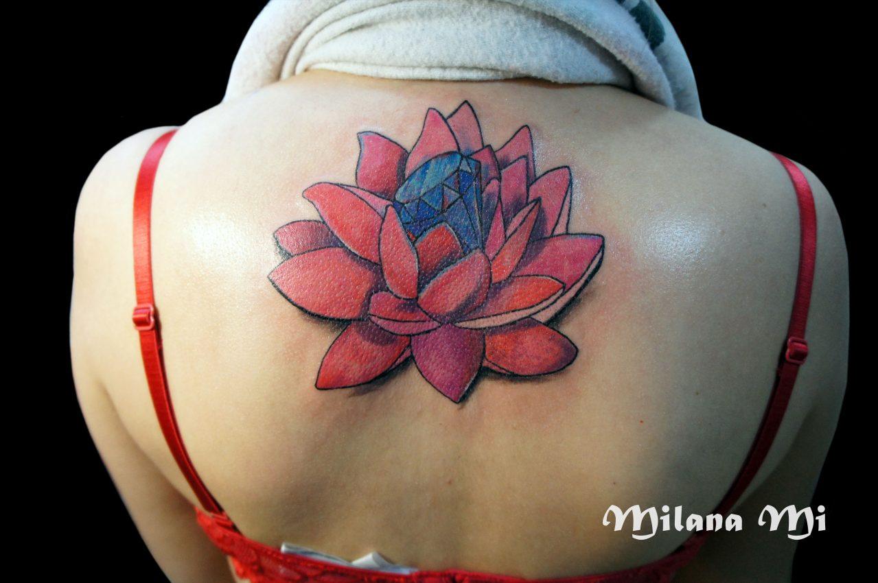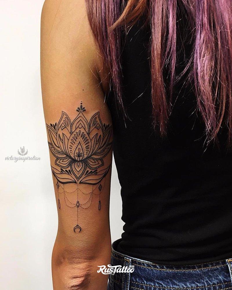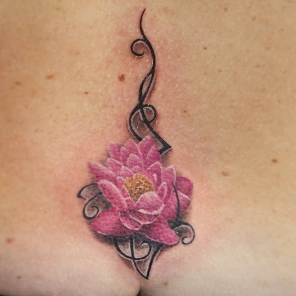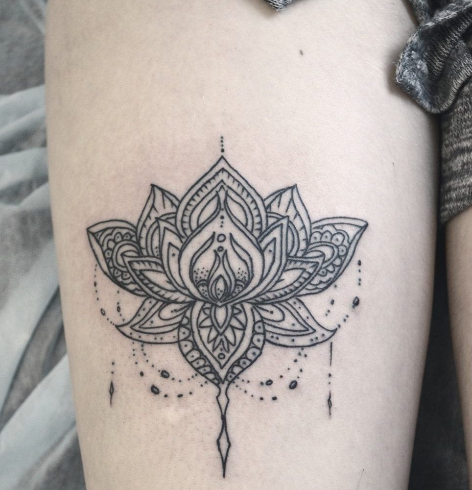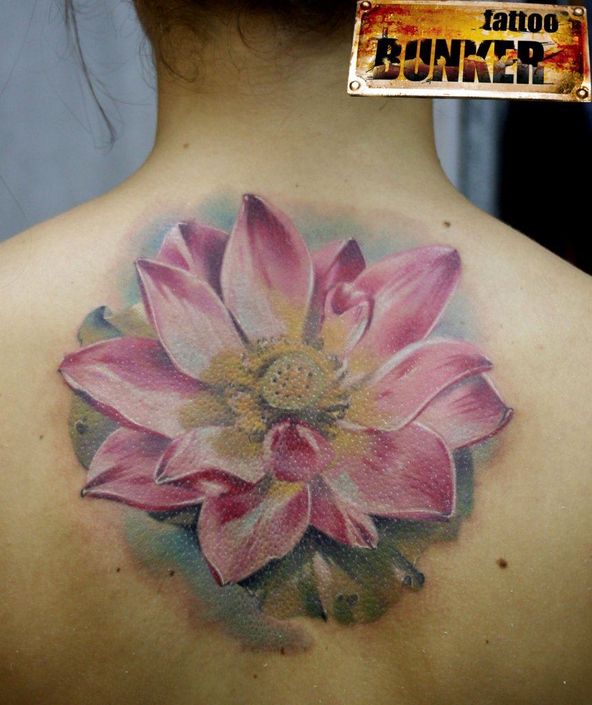 Lotus Tattoo: signification, croquis, techniques de réalisation avec exemples dans la photo