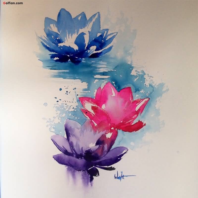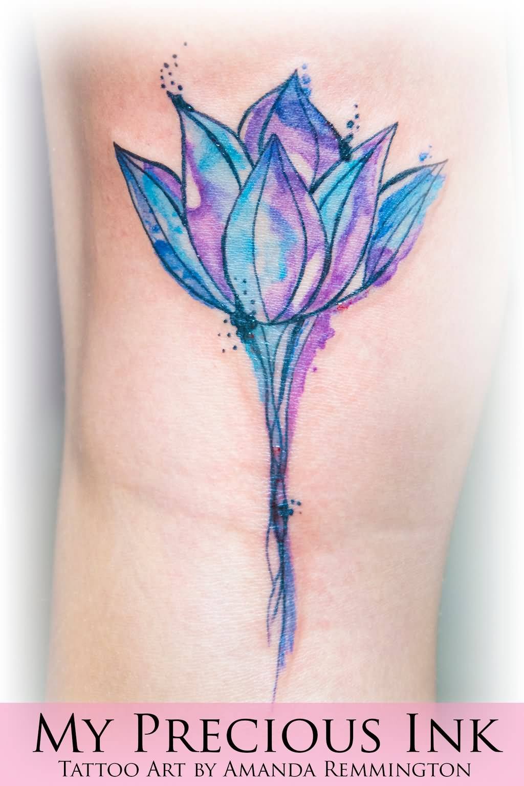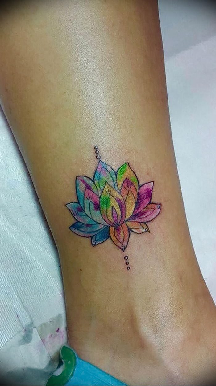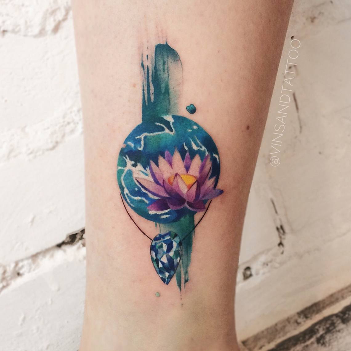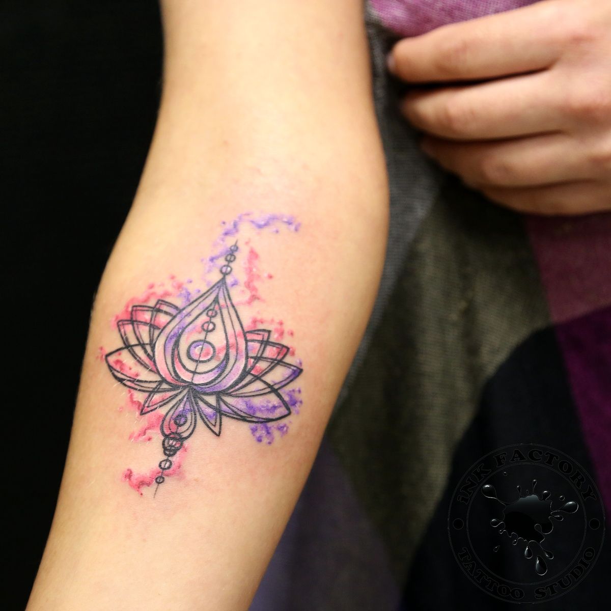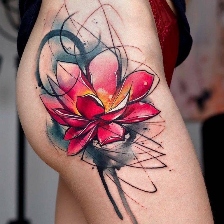 Le plus souvent, les dessins du corps d'un lotus coloré sont réalisés par des représentants des pays de l'Inde ou de la Chine. Ils sont plus réalistes et fabriqués dans un style psychédélique. Aujourd'hui, les tatouages aquatiques sont populaires. Cette vue vous permet de représenter un dessin, certes pas très réaliste, mais très beau et délicat. Le seul inconvénient des tatouages en aqua est le coût élevé d'une peinture de haute qualité, mais pour créer un excellent tatouage, vous ne devez pas épargner de l'argent. Sinon, le dessin à l'aquarelle perdra son expressivité et l'image sera tout simplement «perdue».