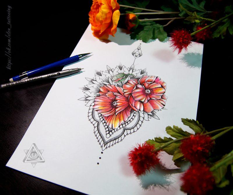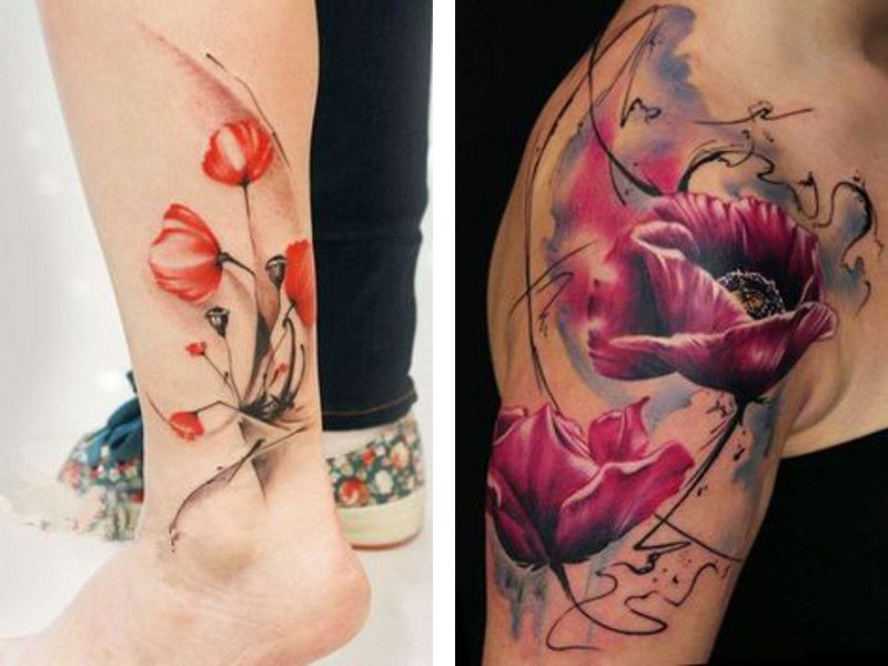 Tatouage de pavot: Sens pour les filles et les hommes, beaux croquis, photos dans différents styles