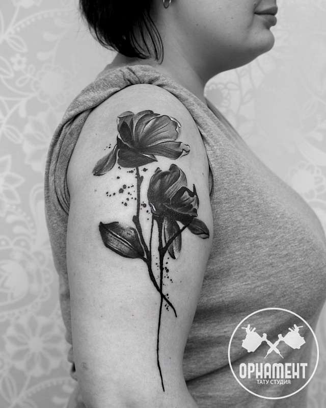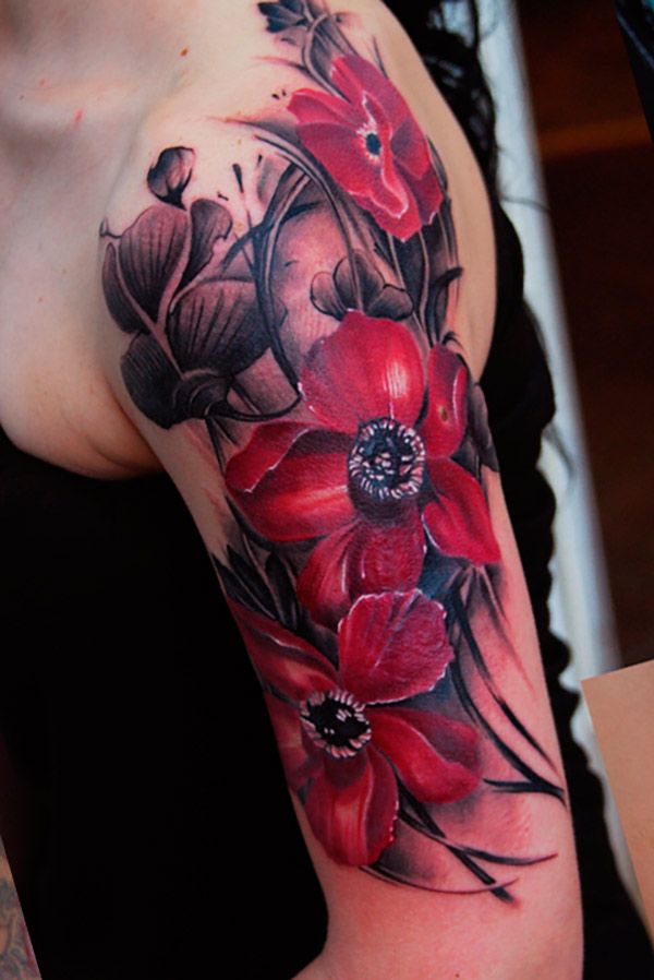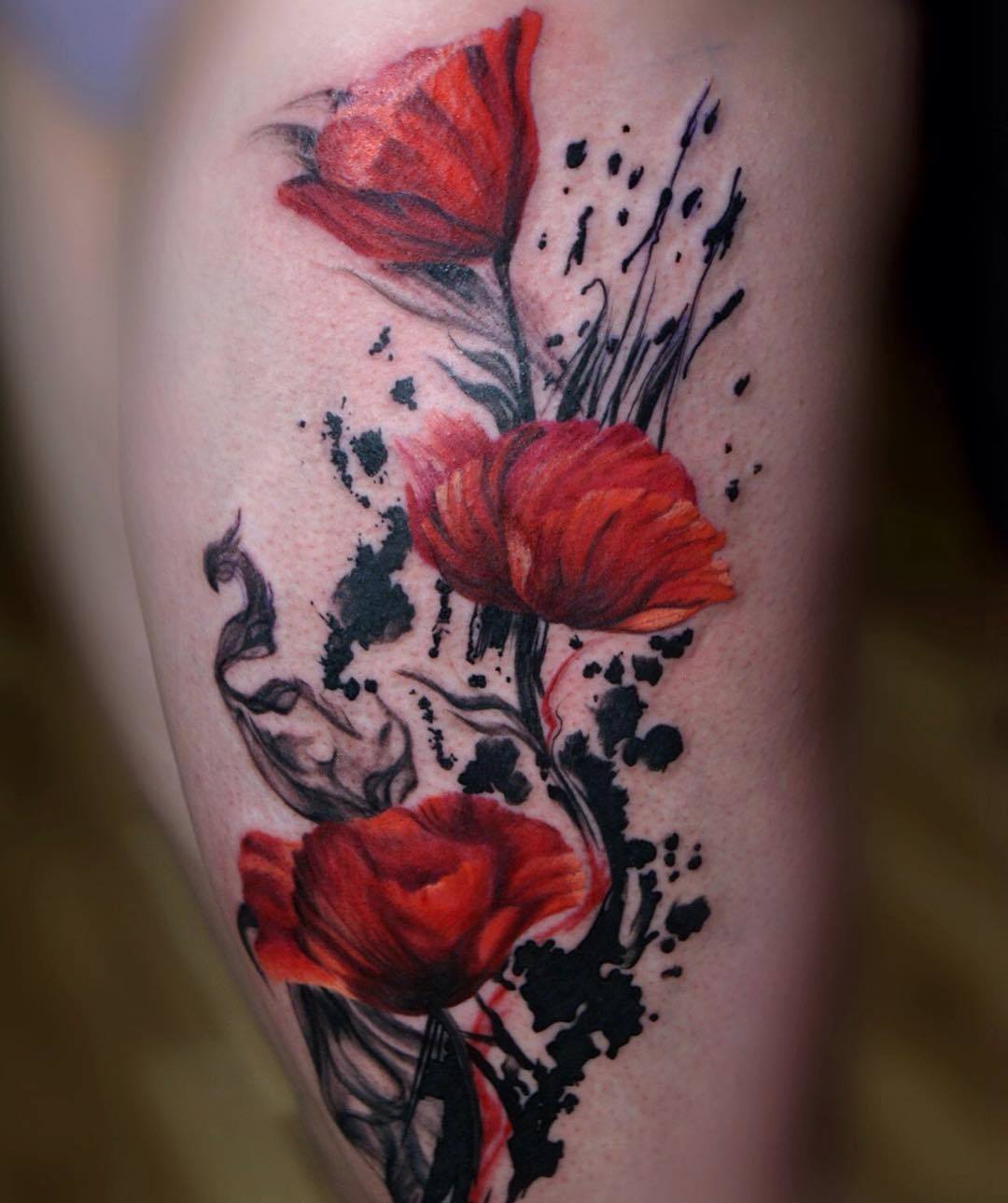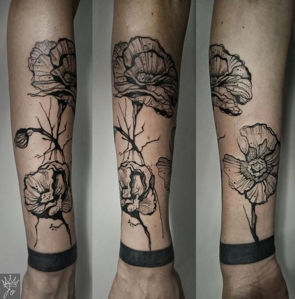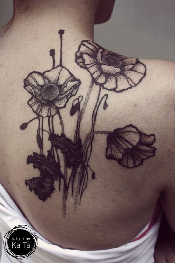 Tatouage noir avec des coquelicots: exemples spectaculaires sur la photo