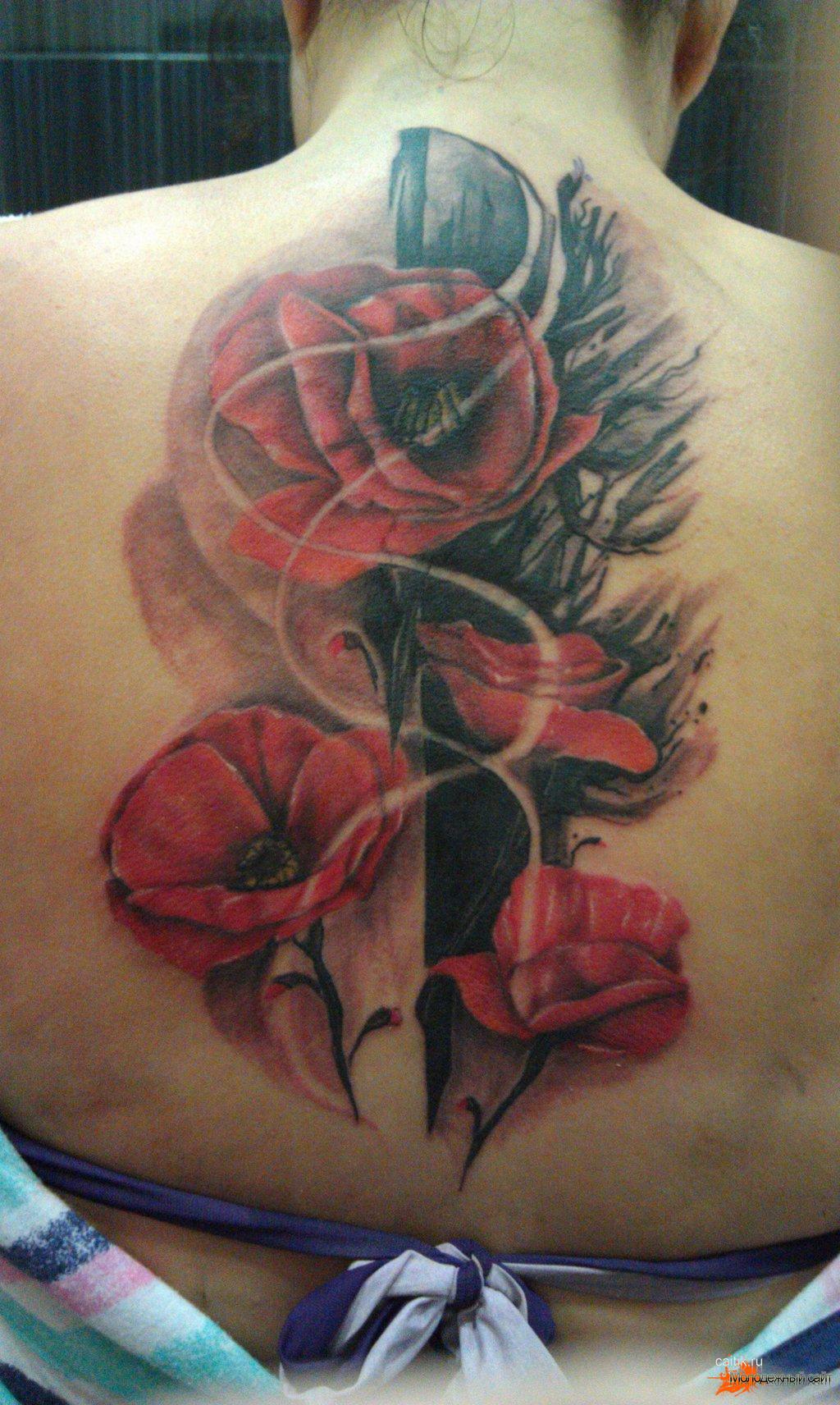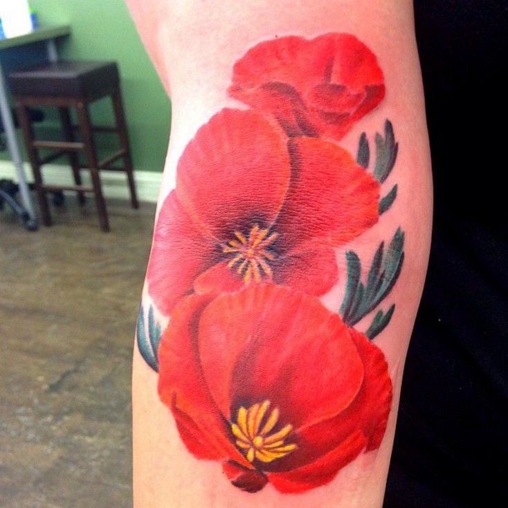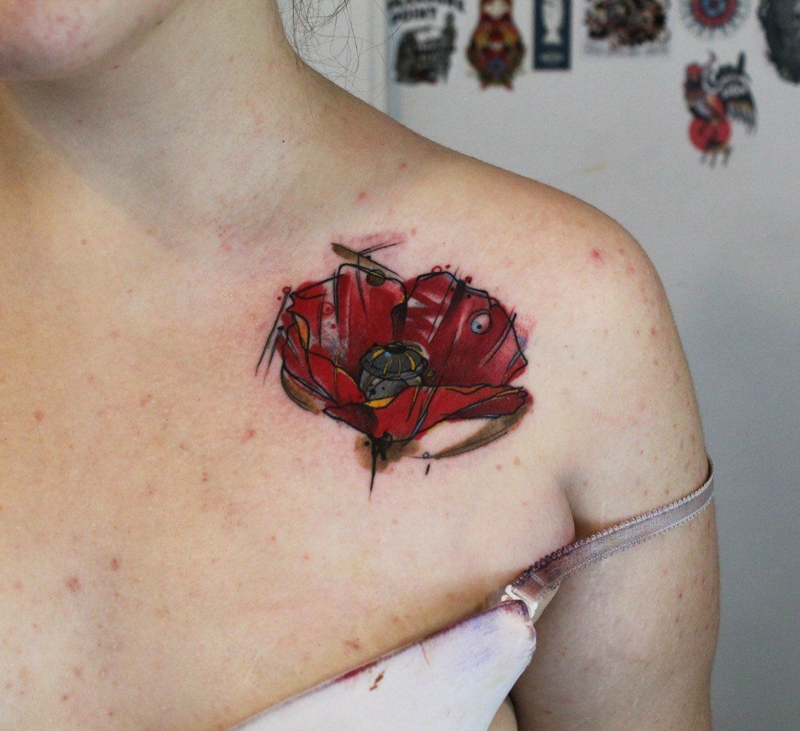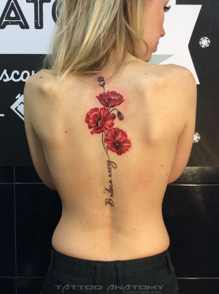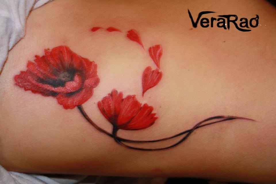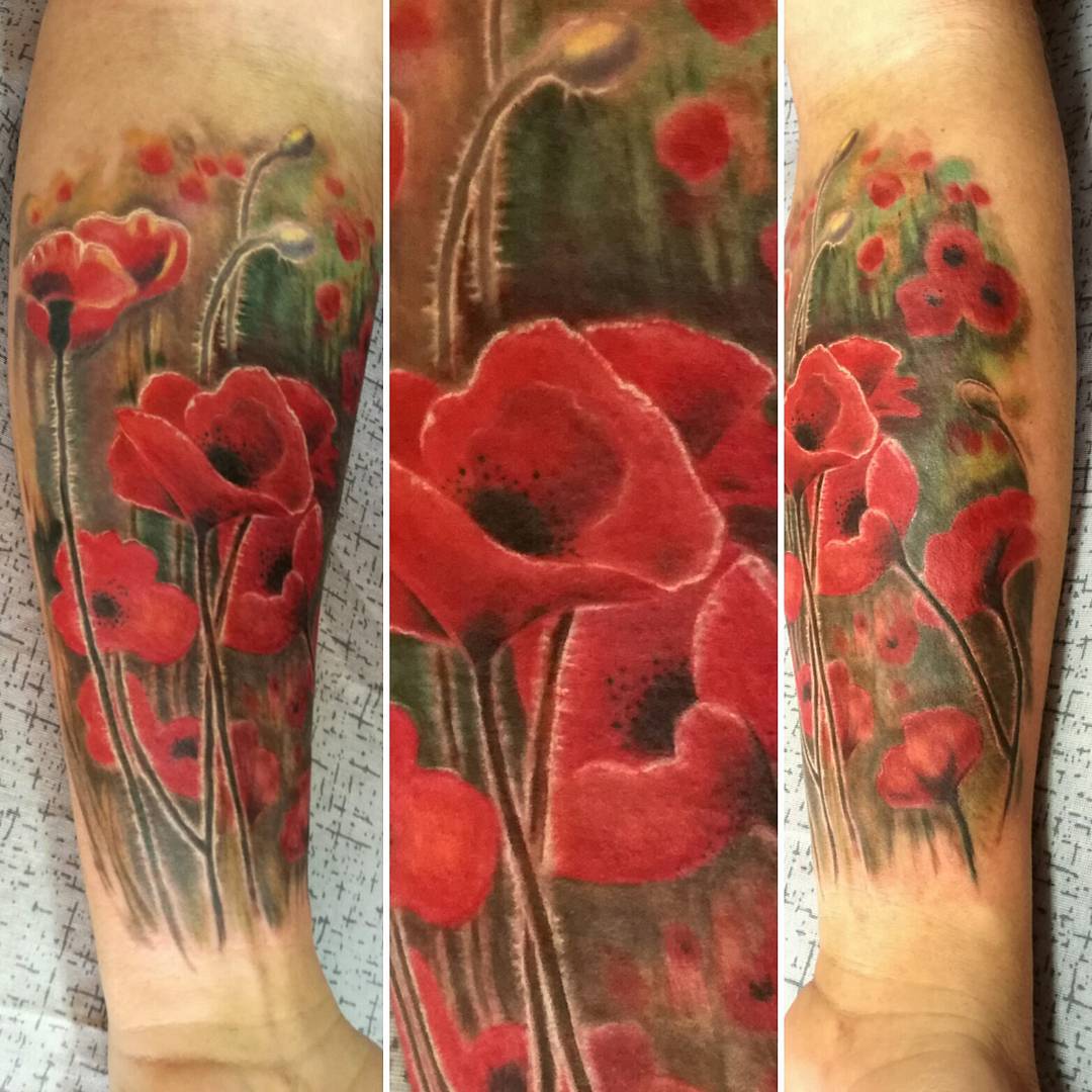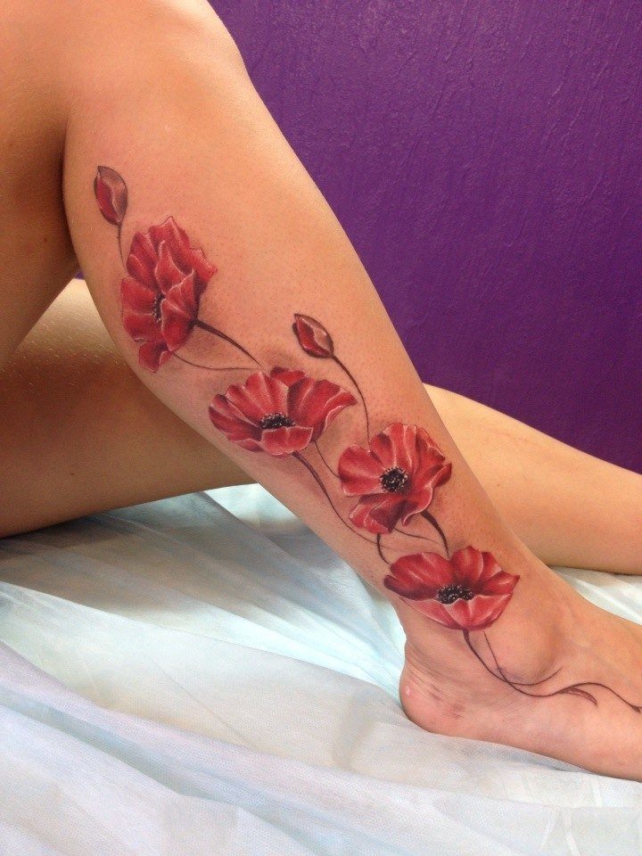 Souvent, les coquelicots sont représentés sur la cuisse, les épaules, les côtes ou les avant-bras. De petits coquelicots se farcissent au cou, au pied ou au poignet. Une fleur qui s'enroule autour de la cheville ou au poignet aura l'air très originale pour les filles. Un seul dessin a l'air plus féminin et détendu. Si vous décidez de faire un tatouage à grande échelle, alors l'endroit est sur son dos. En outre, cet endroit est parfait dans le cas où un grand nombre de petits détails seront présents dans la composition corporelle. Par tradition, l’équipe de l’armée place des tatouages sur la poitrine. Cela est dû aux médailles qui sont généralement accrochées à la poitrine.