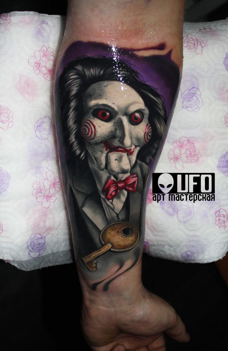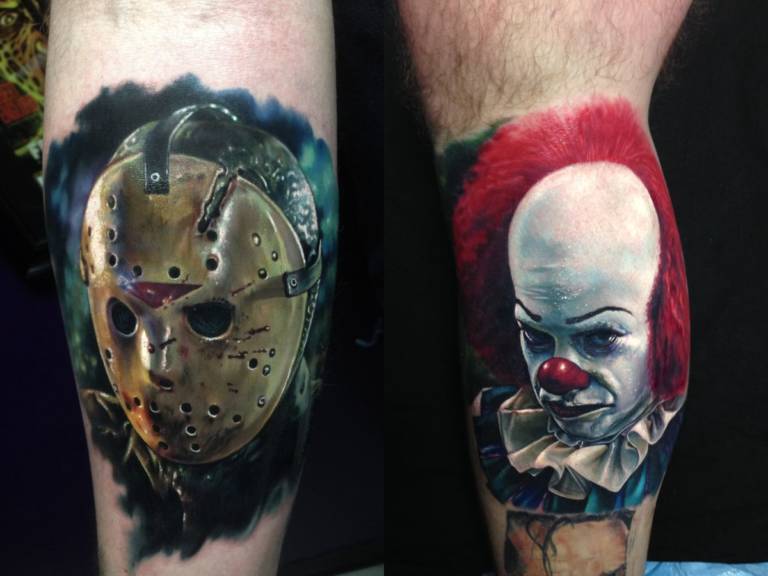 Les tatouages sous la forme d'un masque hollywoodien sont très populaires chez les hommes. Ce tatouage a emprunté son thème aux films hollywoodiens. Et elle personnifie l'horreur et la cruauté. Pour les hommes, les tatouages à l’image de deux masques conviennent également. Un autre tatouage très populaire est un masque de vendetta. La grimace, qui sourit, a un sens ambigu: à première vue, un sourire, mais quelque chose de sinistre se cache derrière elle.