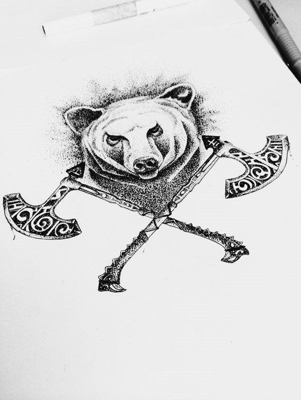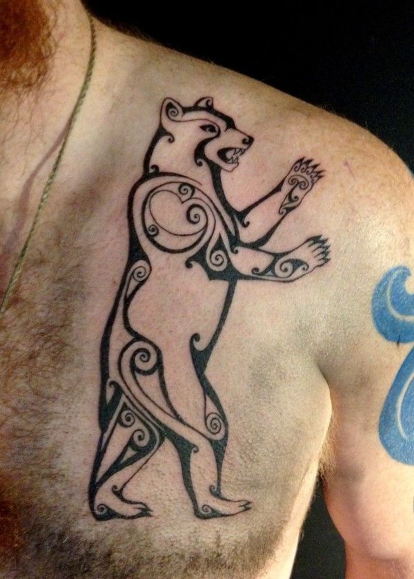 Un ours souriant est l'emblème des guerriers celtiques. On croyait qu'un tel tatouage protégeait le guerrier au combat et rappelait toujours son domicile.