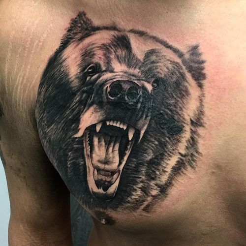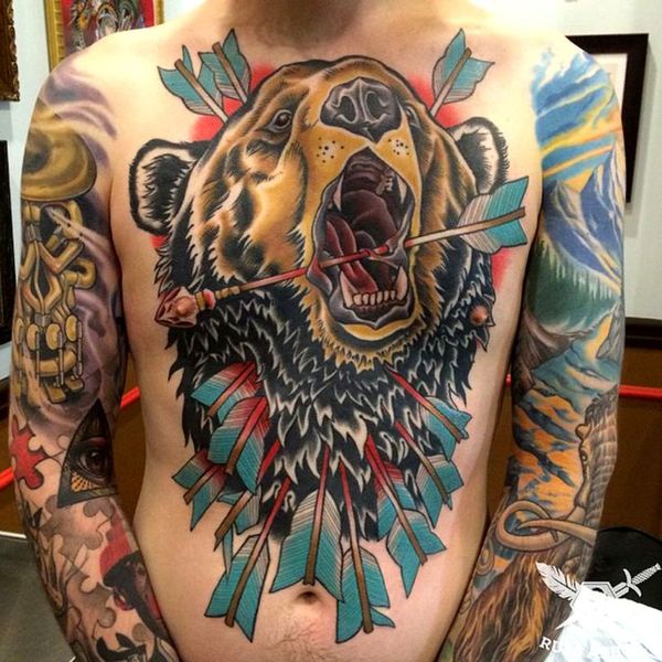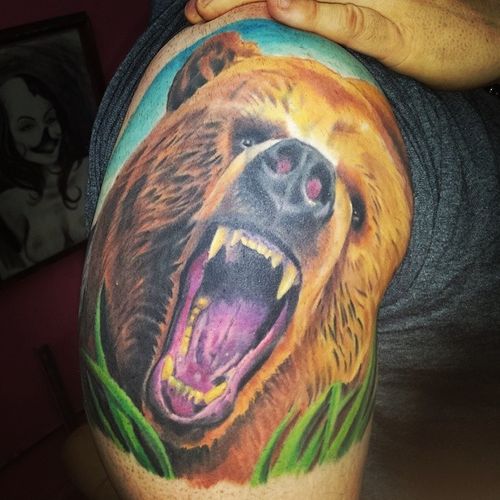Tatouage Grizzly Bear signifie que son propriétaire peut faire face à tous les dangers, l'intrépidité et la détermination.