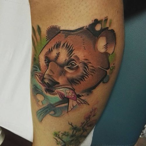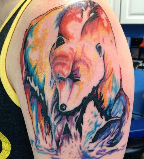 Tatouage d'un ours dans un style aquarelle.