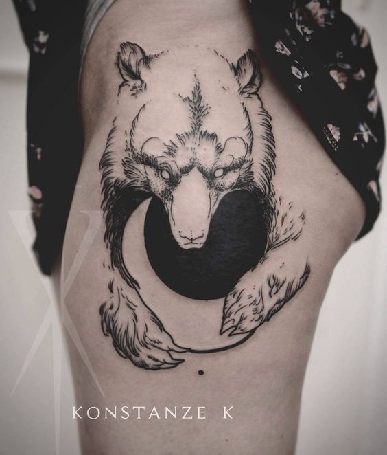 L'ours est un animal unique, formidable et controversé. Tout d'abord, il s'agit d'une bête féroce et dangereuse pour les humains, et deuxièmement, cet animal merveilleux est reconnu pour ses qualités merveilleuses telles que la noblesse, la gentillesse, l'intrépidité et même la tendresse. Les tatouages d'un ours sont principalement choisis par les représentants de la moitié masculine de l'humanité, mais aujourd'hui, on peut souvent trouver un bon tatouage d'ours sur le corps des filles.
