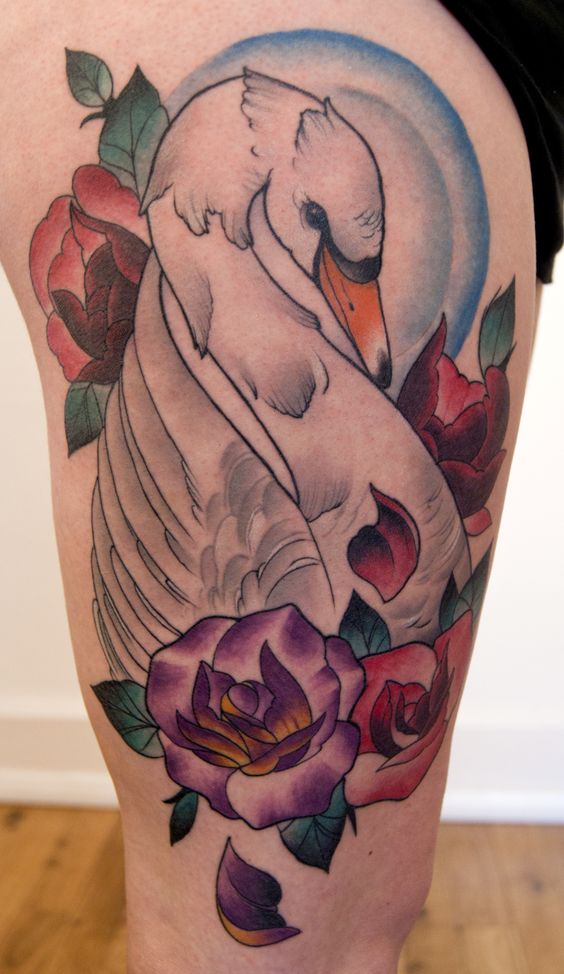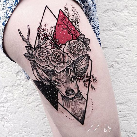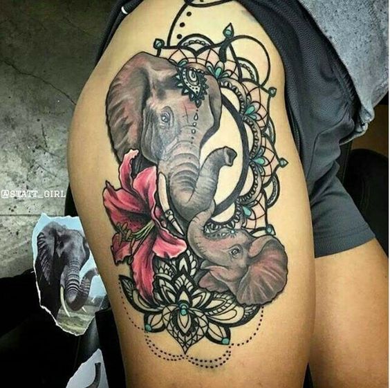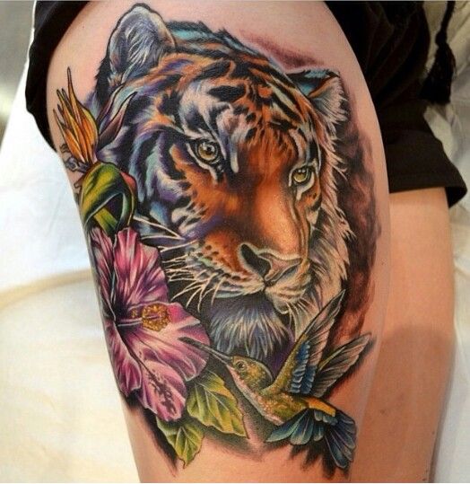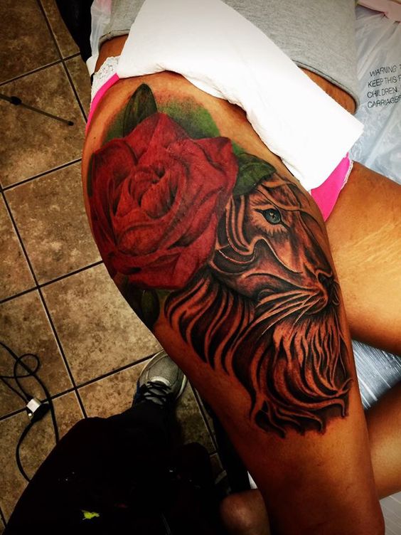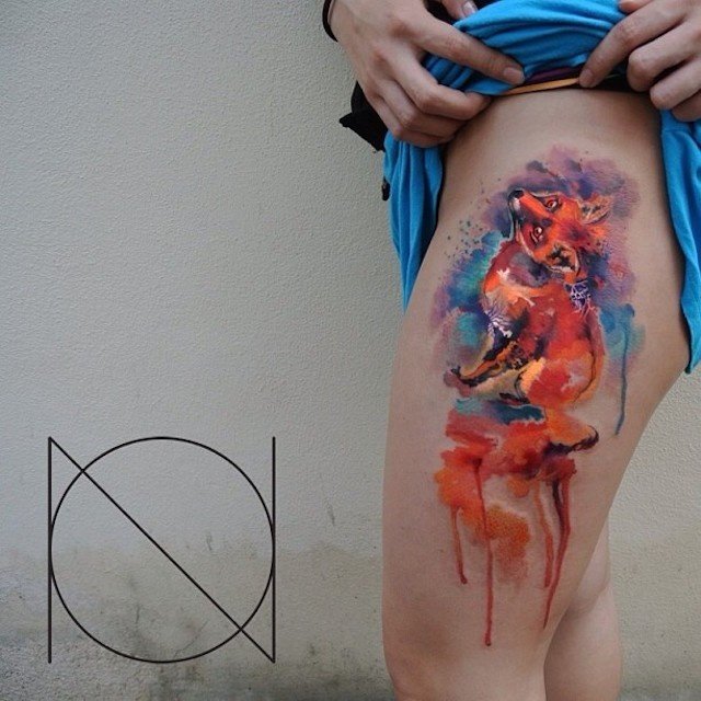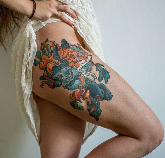 Avant de se rendre au salon de tatouage, la fille doit bien comprendre ce qu’elle veut du maître. À propos, la silhouette visuelle dépend aussi du choix du tatouage. Certains tatouages sur la cuisse peuvent allonger encore plus la longueur de la jambe, et il existe une forme de tatouage qui cache les kilos superflus à l'extérieur. L'échelle de la surface du trouble sur laquelle le tatouage est appliqué est très grande. Les thèmes populaires des tatouages de la hanche sont des représentants du monde animal. C'est exactement ce qu'il faut pour une telle échelle. Il semblerait qu'un tigre soit la version masculine d'un tatouage, mais le dessin d'un prédateur est particulièrement populaire chez les filles. La plupart des filles préfèrent éviter l'image de prédateurs rebelles. L'éléphant est un excellent choix pour les sous-vêtements. Cela symbolise le sérieux. Mais le tatouage de renard sur la hanche est synonyme de liberté et de caractère vivant. Les oiseaux ne faisaient pas non plus exception à leur image sur la cuisse féminine. Canaries, cygnes et beaucoup d’autres belles espèces d’oiseaux ornent le corps de la femme.