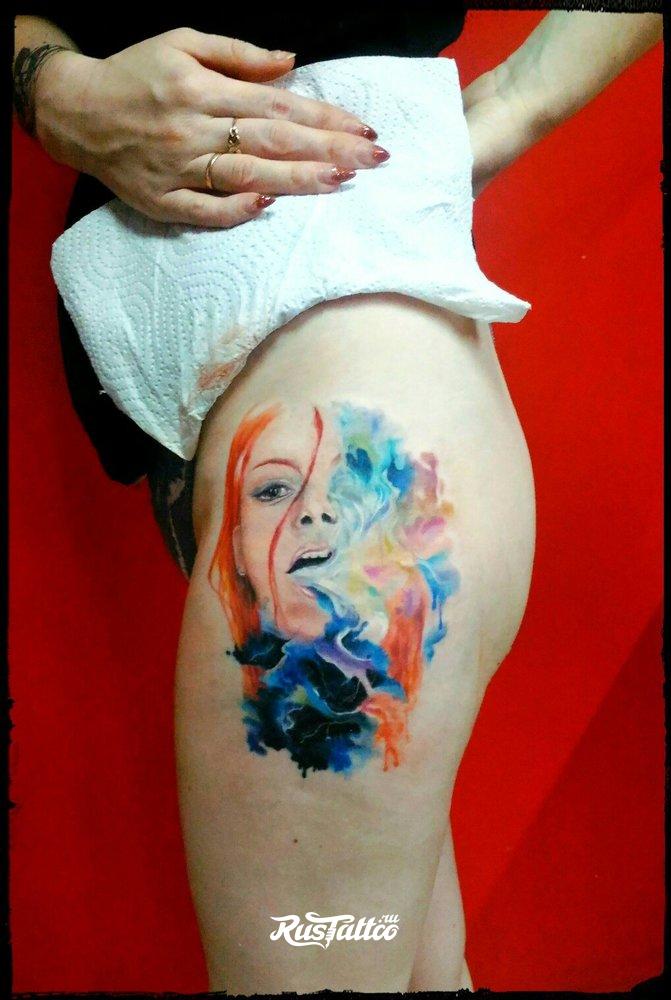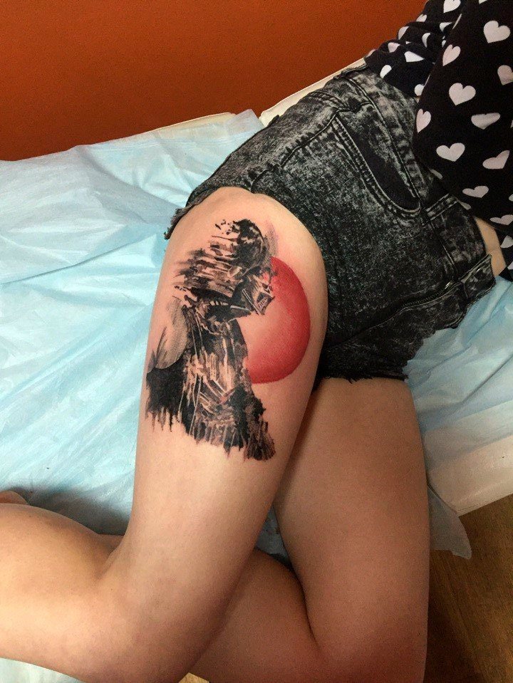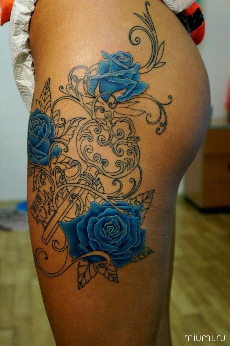 Lorsque vous choisissez une esquisse pour la zone de la hanche, prenez en compte les modifications possibles du corps.Les filles ont tendance à s’améliorer avec l’âge et, par conséquent, un tatouage à la hanche ne semblera pas attrayant sous une forme étirée. Les portraits sont les plus déformés. Pour éviter un problème aussi ridicule, faites un tatouage brillant à l'extérieur. Sur le dos ou le devant de la cuisse, il est intéressant d’appliquer un tatouage uniquement aux personnes qui sont sûres à 100% que leur silhouette ne changera pas, puisqu’elles mènent un style de vie plutôt sportif et qu’elles envisagent de le mener à un âge extrême.