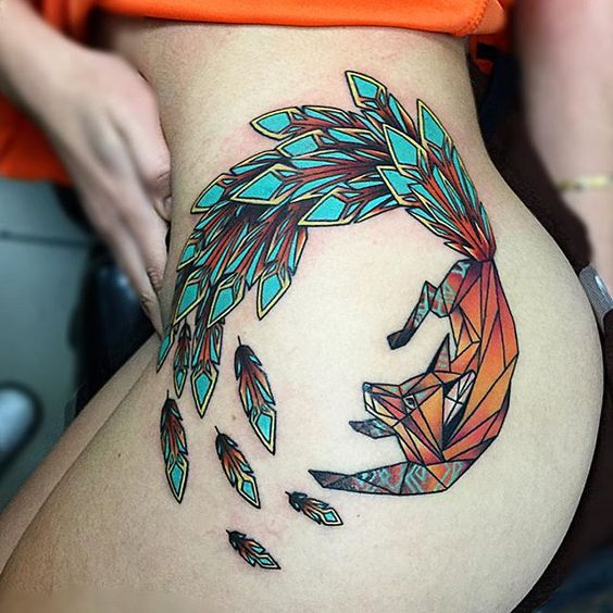 Quelqu'un considère que la zone de la hanche est moins douloureuse, mais imaginons que beaucoup de travail nécessite beaucoup de temps et d’efforts, ce qui entraîne davantage de douleur. Peu de gens font un tatouage miniature dans un tel endroit, d’autant plus qu’aujourd’hui, il ne s’agit pas d’eux, mais des tatouages les plus marquants de la hanche. L’opinion des hommes sur les tatouages sur les hanches des filles se résume en une chose: «c’est sexy!» Les tatouages colorés sur les hanches sont incroyables.