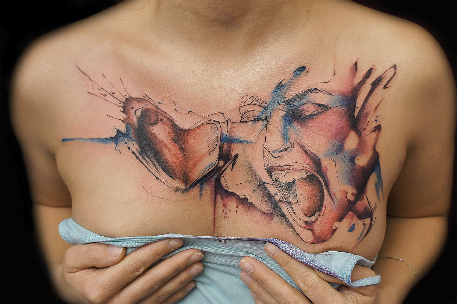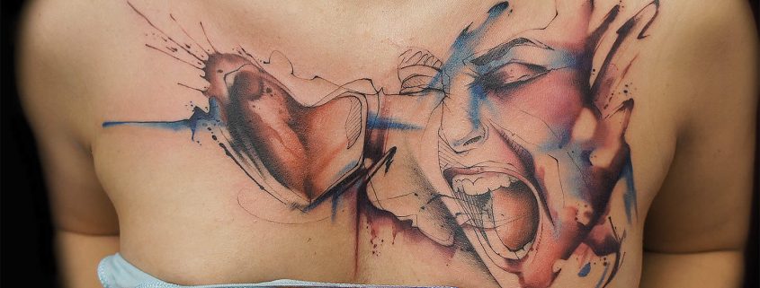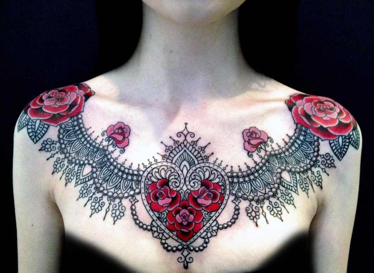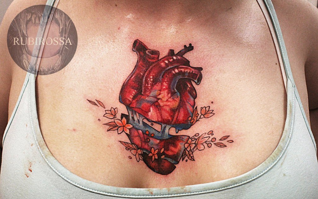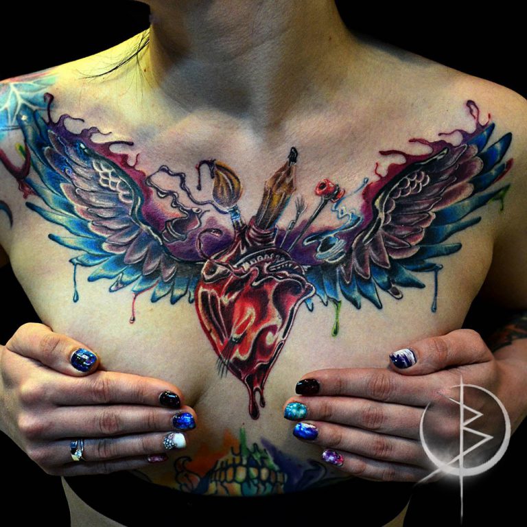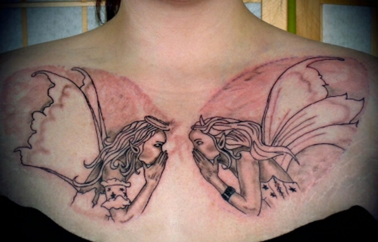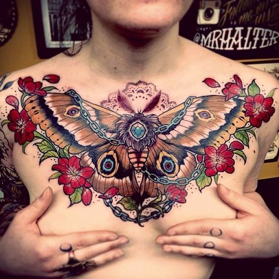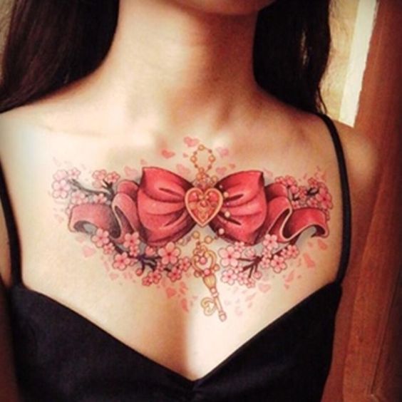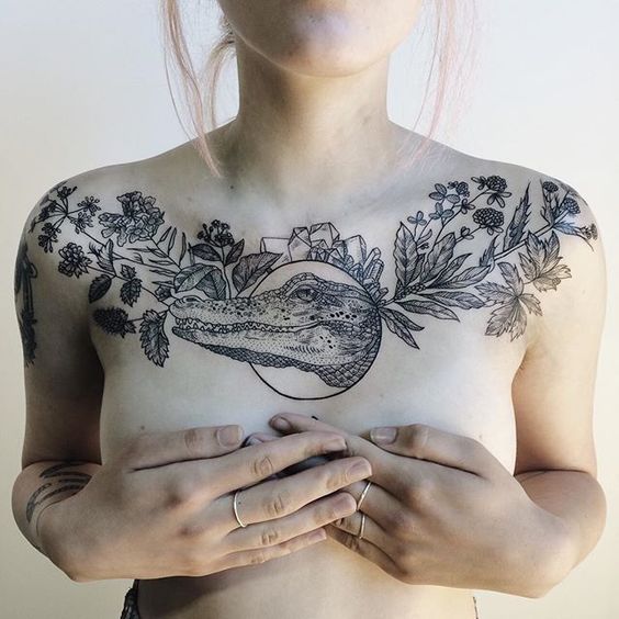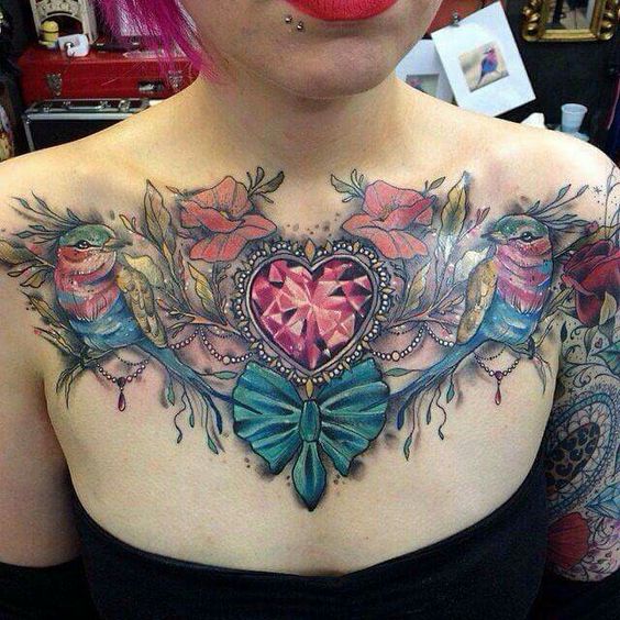 Un tatouage sur la poitrine est une excellente occasion de cacher les cicatrices. Aujourd'hui, la région de la poitrine est choisie comme lieu de tatouage par les personnes qui ont subi certaines interventions chirurgicales. La saturation des tatouages de couleur sur la poitrine restera pendant une longue période, car le motif que l'on peut porter se trouve sous les vêtements et n'est pas exposé aux rayons infrarouges du soleil. Toutes les conceptions de tatouage de la poitrine peuvent être réalisées dans des variations modernes en utilisant une encre brillante.