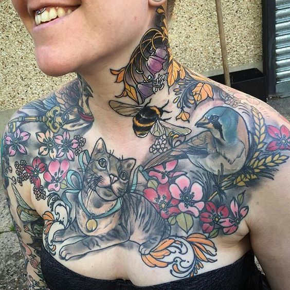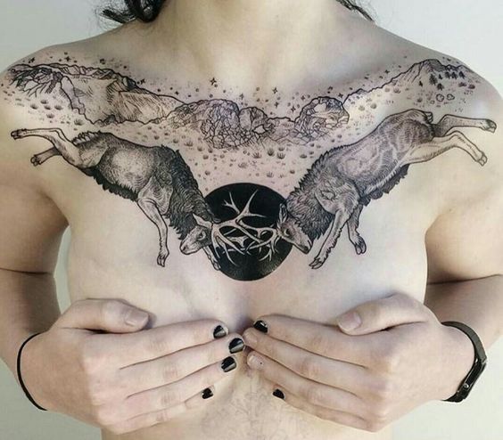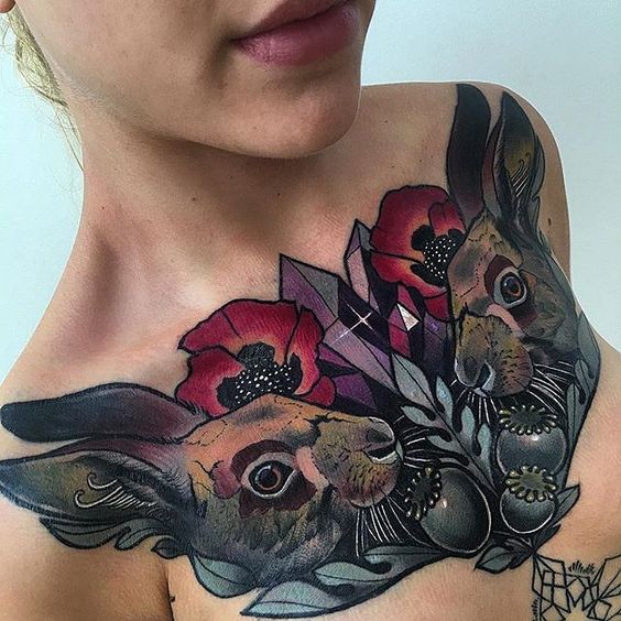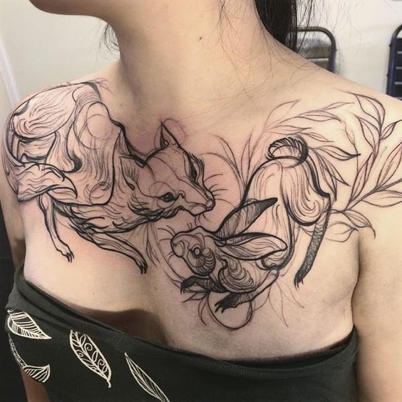 Tatouage sur la poitrine: photos d'exemples féminins modernes avec des animaux