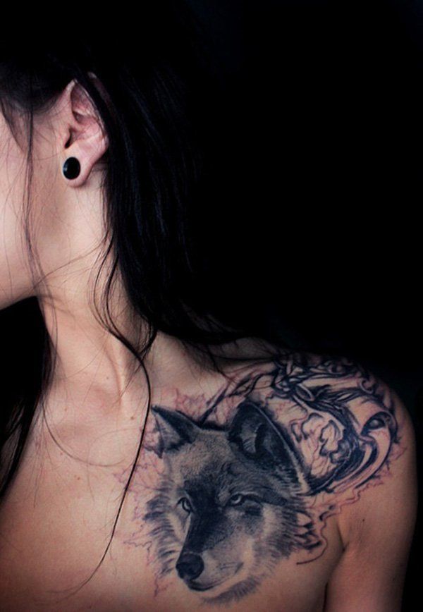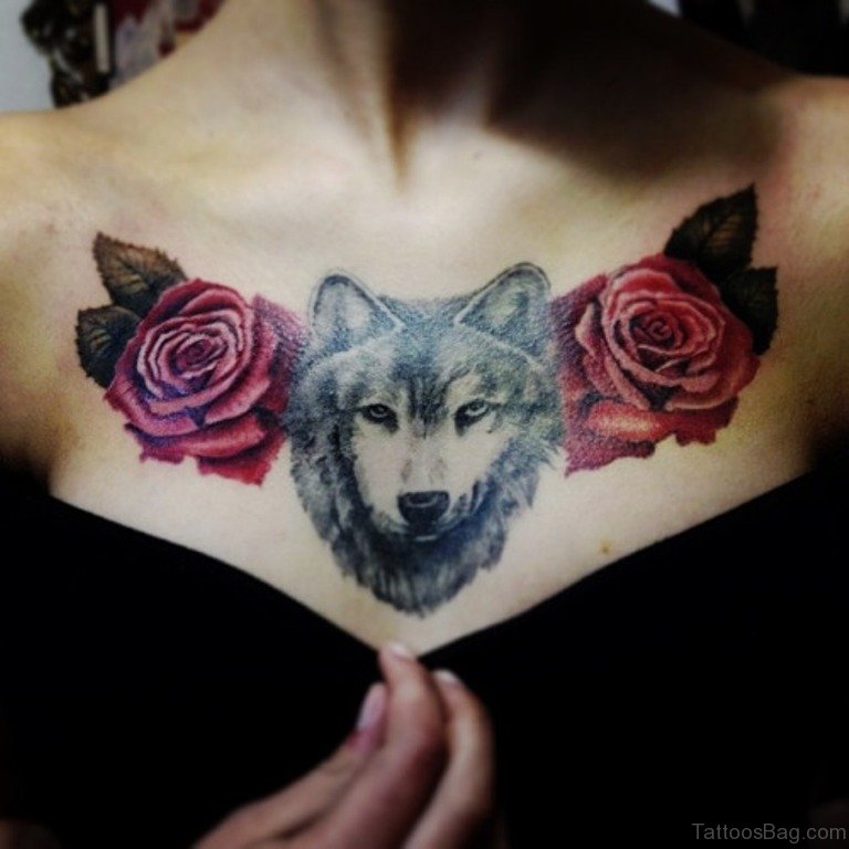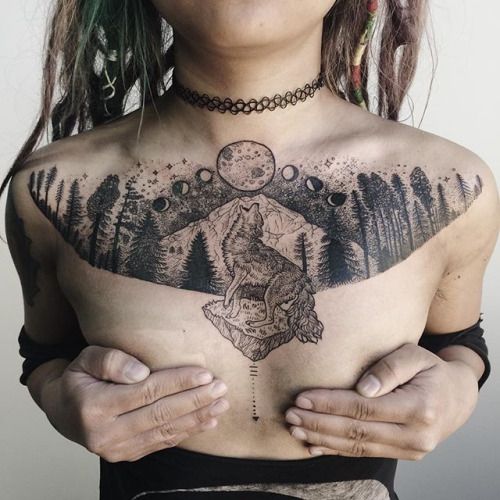 Tatouage d'une femme loup sur sa poitrine: beauté sauvage, individualité et originalité