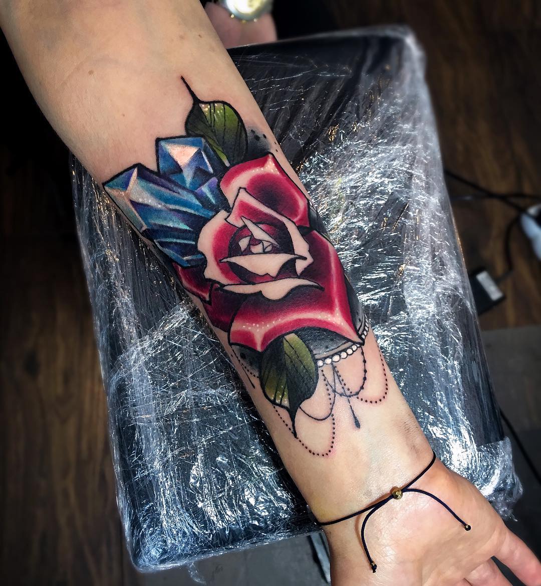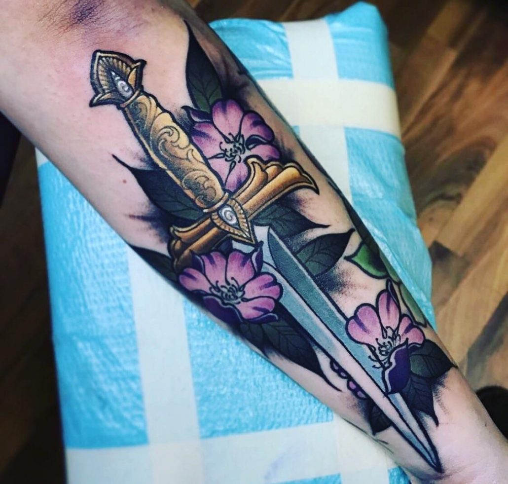 Parmi les parties populaires du corps où il est d'usage d'appliquer des tatouages, on peut distinguer l'avant-bras. Grâce à sa forme et à sa taille, presque toutes les images auront fière allure ici. En règle générale, les filles choisissent un tatouage sous la forme d'une fleur, tandis que sur l'avant-bras d'un homme, vous pouvez souvent voir une épée, une croix ou des ornements abstraits.