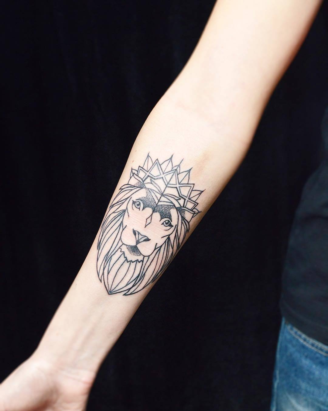 La taille de l'avant-bras vous permet de mettre ici l'image de n'importe quel animal. Parmi les options communes, on peut distinguer un lion, personnification du courage, du pouvoir, de la fierté et de la justice. Mais l'image d'une lionne a une signification légèrement différente. On pense qu'un tel tatouage symbolisera le bonheur féminin et la joie de la maternité.