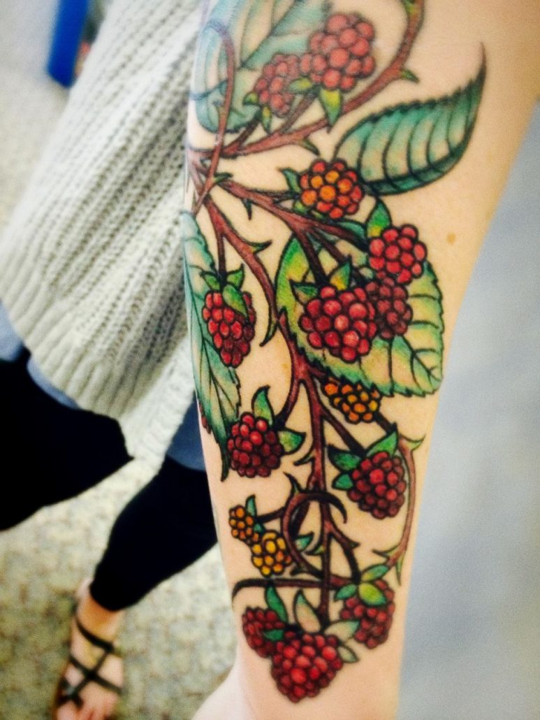 Exceptionnellement, un tatouage à la framboise se penchera sur votre bras. Habituellement, il est associé à des expériences d'amour et au désir de s'y plonger tête baissée. Elle peut aussi indiquer que la jeune fille a connu une grande déception dans l'amour qui lui a fait mal. C'est ainsi que vous pouvez interpréter le motif avec des pointes.