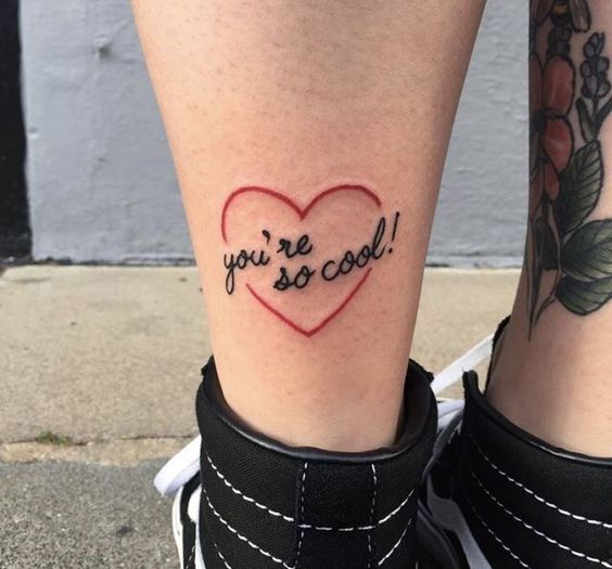 Les tatouages sous la forme d'une inscription sur les jambes sont plutôt beaux. L'inscription sur la cheville, la cheville ou le pied est attrayante. Les représentants du sexe faible choisissent très souvent cette option. Mais lors du choix de ces endroits, vous devez vous rappeler que la peau y est très délicate et que vous devez faire preuve de patience pour supporter la procédure douloureuse. La cuisse est l’un des endroits les plus populaires pour le tatouage des filles. Un grand champ pour la fuite des pensées et la mise en œuvre des idées créatives du pair. Vous pouvez décorer la cuisse féminine avec une petite phrase ou un poème entier. À propos, le tatouage de l'inscription sur la hanche présente un énorme avantage: il souligne magnifiquement la flexion du corps.