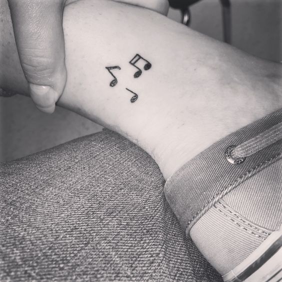 Une petite note sur le corps de la fille est magnifique et attrayante. Il peut être situé derrière le pavillon, sur le cou, sur le poignet, la cheville ou d’autres parties du corps. Dans n'importe quel salon, vous obtiendrez un tatouage sous la forme d'une note. Ce serait une excellente idée pour un tatouage minimaliste.