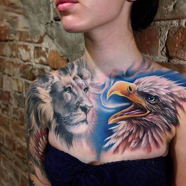 Le monde change. En lien avec l'urbanisation de la société, les préférences du beau sexe changent. Les filles et les femmes qui se caractérisent également par des qualités telles que la noblesse et la détermination ne sont pas indifférentes aux tatouages avec un fier aigle. L'image d'un aigle dans le nid symbolise la protection du foyer familial, l'amour. Ce tatouage est choisi comme un talisman.