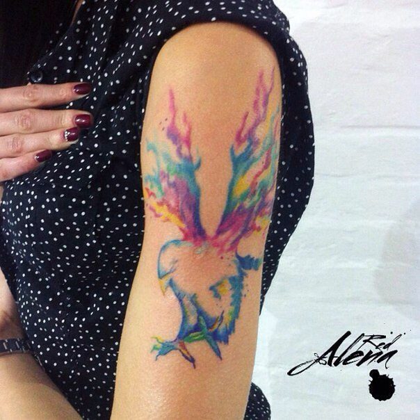 En étudiant l’histoire du développement de l’humanité, des cultures et des époques, il est établi que le tatouage est inextricablement lié à une personne qui aspire toujours à s’exprimer, en particulier à notre époque, alors que le tatouage est devenu une véritable tendance. Les garçons et les filles essaient de décorer leur corps avec des tatouages à la mode, ne comprenant pas toujours leur signification, ou vice versa, ils choisissent consciemment, comme pour laisser les autres savoir quel genre de personne vous êtes et quel est votre personnage. Le choix de beaucoup réside avec le tatouage sous la forme d'une image d'un oiseau d'aigle fier - un symbole de feu et d'immortalité, de force et de puissance, d'esprit de jeunesse.