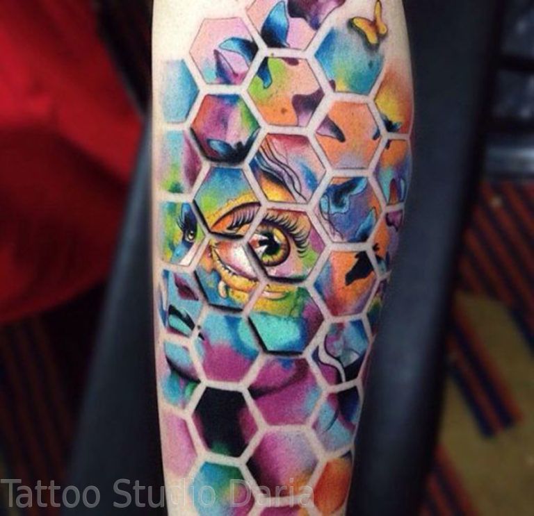 Les ornements de tatouage en couleur sont très courants sur les corps fragiles des filles. Les femmes à la nature douce et modeste préfèrent les motifs floraux et les motifs floraux pour exprimer la féminité et la tendresse. C'est aussi une excellente occasion de devenir plus attrayant pour les hommes. Les filles qui ont de grandes ambitions choisissent des motifs celtiques et scandinaves et appliquent le plus souvent de tels tatouages sur la cuisse, la poitrine, le dos ou la main.