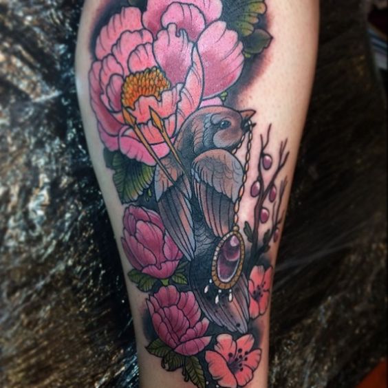 Lorsque vous choisissez un tatouage de fleur de pivoine pour vous-même, vous devez savoir que cette fleur est très belle et complexe. Par conséquent, il n'est pas facile de transmettre toute sa beauté dans un tatouage. Le résultat dépendra du croquis que vous aurez choisi et du tatoueur. Les filles peuvent choisir elles-mêmes un tatouage sous la forme d’une seule fleur ou l’image d’une pivoine associée à un paysage. Par exemple, un dessin de la faune est appliqué, il est complété par une fleur de pivoine, qui représente un insecte. Des fleurs de pivoine avec des oiseaux sont souvent appliquées. Toutes ces images sont considérées comme de bons personnages. Les dessins de tatouage de pivoine sont toujours très beaux.