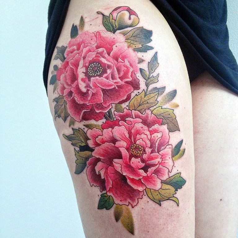 Dans le monde moderne, vous ne surprendrez personne avec un tatouage sur un corps de femme. Après tout, une pivoine, comme nous l’avons déjà dit, est une fleur d’homme, mais cela ne l’empêche pas d’avoir beaucoup de qualités féminines et d’amulette. Dans certains pays asiatiques, on croyait depuis l’antiquité qu’un tatouage avec une pivoine chez les filles aiderait à trouver un conjoint fidèle ou qu’il serait un excellent talisman pour le bien-être de la famille. Pour les filles célibataires, un tatouage de pivoine aide à se protéger des yeux mauvais et des malédictions de célibat. Fondamentalement, un tatouage représentant une pivoine a été appliqué pour protéger contre tout problème. Les Japonais pensaient qu'une femme avec un tel tatouage pouvait attirer n'importe quel homme. La fleur de pivoine lui donnait un pouvoir sans précédent sur la volonté des hommes et donnait au propriétaire d'un tel tatouage une féminité et une attractivité incroyables.