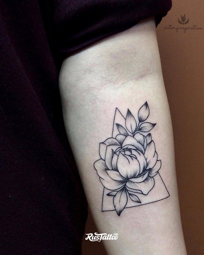 Mais tout le monde n’aime pas les tatouages colorés et vibrants. Les amateurs de classiques trouveront un tatouage de style asiatique - une pivoine noire.En noir et blanc, un tel tatouage est beaucoup plus simple que la couleur, mais son look est unique et original.