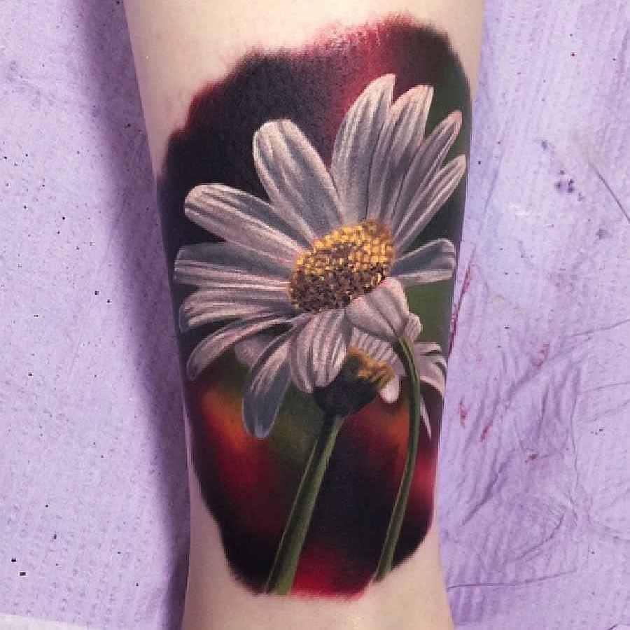 Un tatouage avec une variété de couleurs s’incarne dans tous les styles, y compris le réalisme. Le tatouage en couleur est l'un des motifs les plus populaires chez les filles. Ces tatouages incluent une belle image extérieure avec une signification profonde. L'avantage principal du réalisme dans l'exécution des fleurs est que vous pouvez demander au maître d'appliquer non seulement une fleur, mais un beau bouton avec de petites gouttelettes de rosée du matin ou de pluie. Ces détails insignifiants ajoutent une signification et une couleur supplémentaires au dessin, le rendant unique.