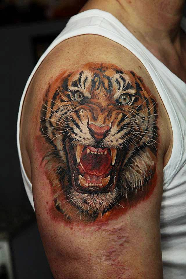 Le réalisme du tatouage pour les hommes est un excellent moyen de vous exprimer. Le plus souvent, les hommes réalisent des dessins capables de souligner leur courage et leur force. Par exemple, des animaux tels que le loup, l'ours, le tigre ou le lion. Il y a souvent des motifs naturels ou des portraits.