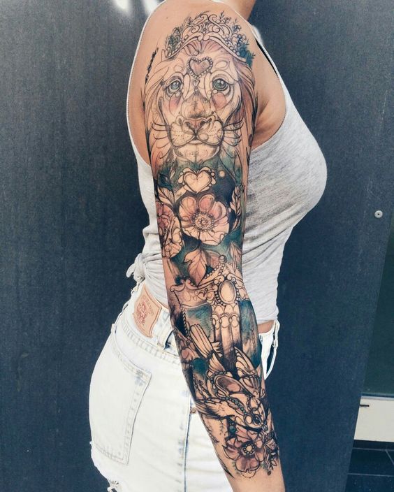 Les femmes aussi souvent que les hommes appliquent un tatouage sur leur corps, car ils fournissent une occasion de montrer leur individualité et de se démarquer de la foule. L'intrigue d'un tatouage féminin sous la forme d'une manche doit être sélectionnée avec soin, car l'exigence principale de cette image de sous-vêtement est l'exactitude, la couleur et la beauté. Le plus souvent, les filles choisissent le style du réalisme, chicano, old school. La manche de tatouage est caractérisée par des motifs naturels. Cela peut être un papillon, une fleur, des chats sauvages ou apprivoisés, on trouve souvent des branches de sakura. Il y a des violations des normes connues et les femmes appliquent des dessins avec des serpents, des diables et des croix.