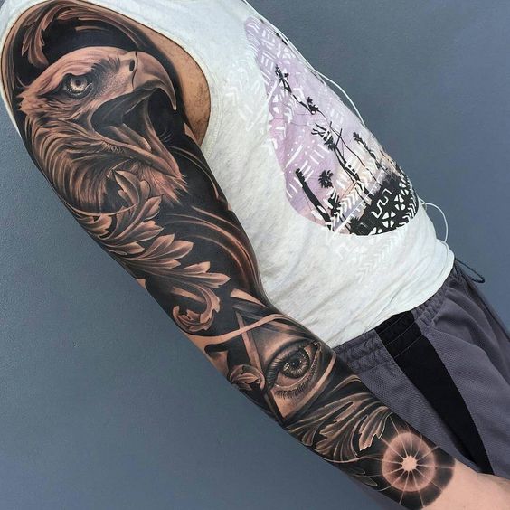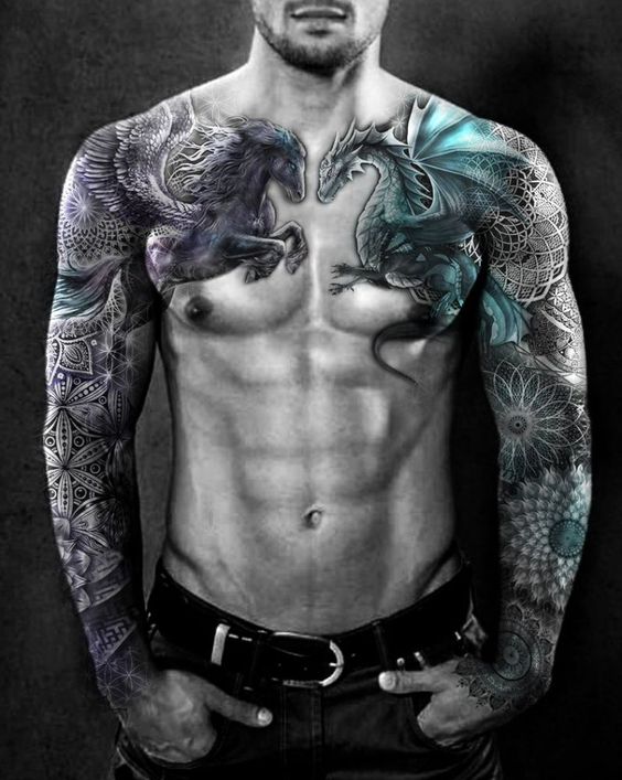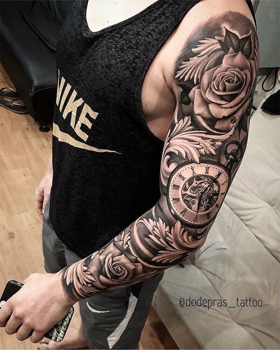 Chaque homme veut souligner sa force et son courage, et le tatouage sur la manche permet de le faire avec son apparence brutale et audacieuse. En règle générale, les hommes préfèrent souvent des styles tels que la biomécanique, la tribu, la vieille école. Le plus populaire parmi les hommes est l'image d'animaux féroces. Ces tatouages soulignent le charisme et le caractère de l'homme. Un manchon pour un sol plus résistant combine généralement une reliure et des motifs différents. En plus, il a l’air assez inhabituel. Un tatouage peut être réalisé pour la beauté, ou avoir beaucoup de sens pour son porteur.