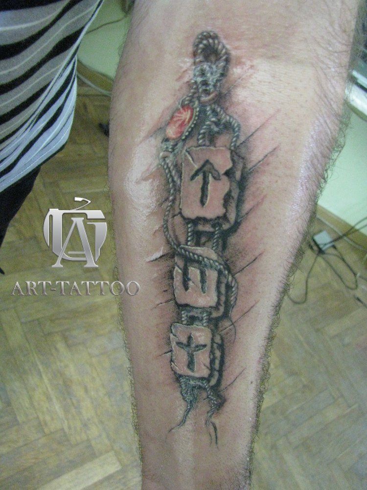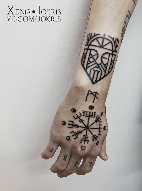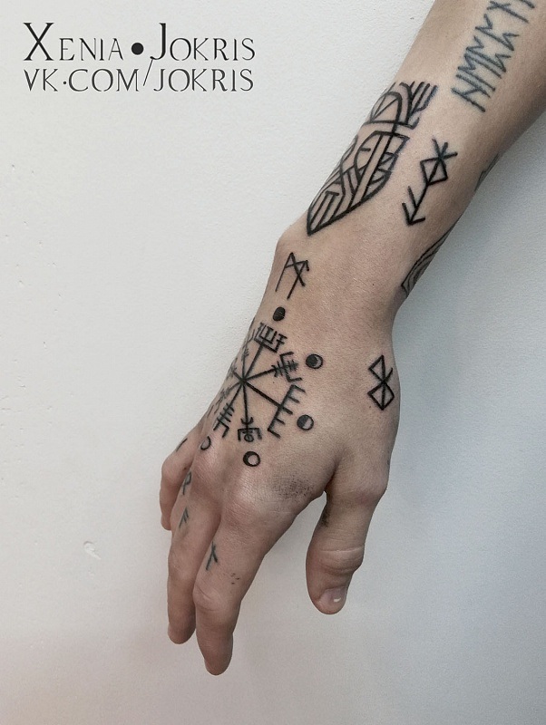 Comme déjà mentionné, les tatouages sous forme de runes agissent principalement comme des talismans. Les dessins sont appliqués sur le corps pour se protéger contre les forces des ténèbres, les troubles et pour aider à trouver un chemin de vie. Très souvent, les runes sont associées à un portrait d'une personne proche et chère, ce qui lui confère une protection qui fait office de talisman. Chaque signe de la rune a sa propre signification: