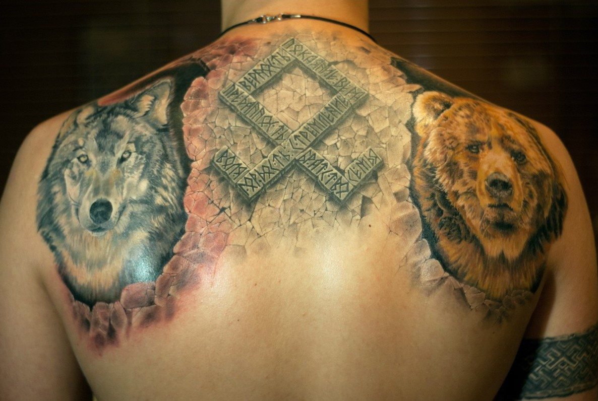 En réalisant des images runiques sur le dos, une personne se protège des maladies, des échecs et des problèmes. C'est une expression de force intérieure et de confiance en soi. Les dessins au dos portent une très grande énergie positive, ce qui procure équilibre et calme intérieur.