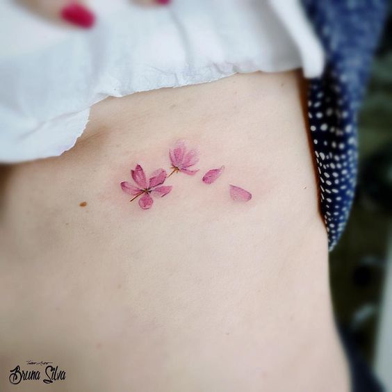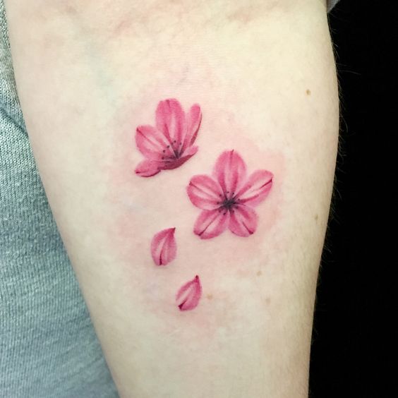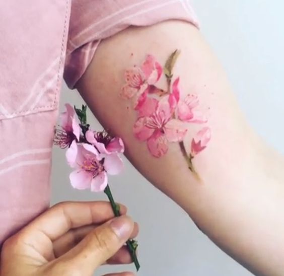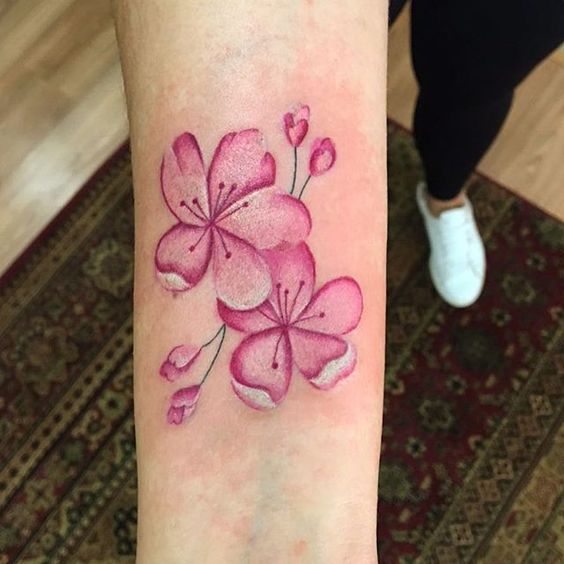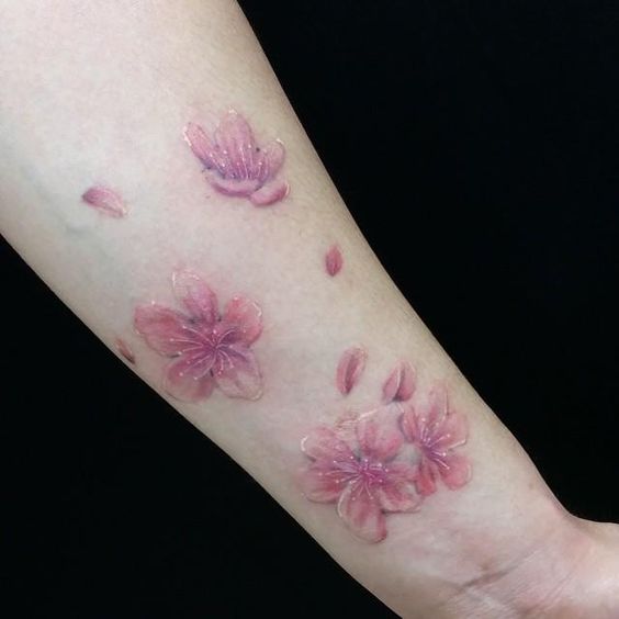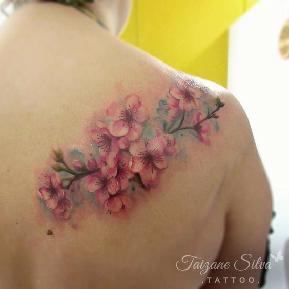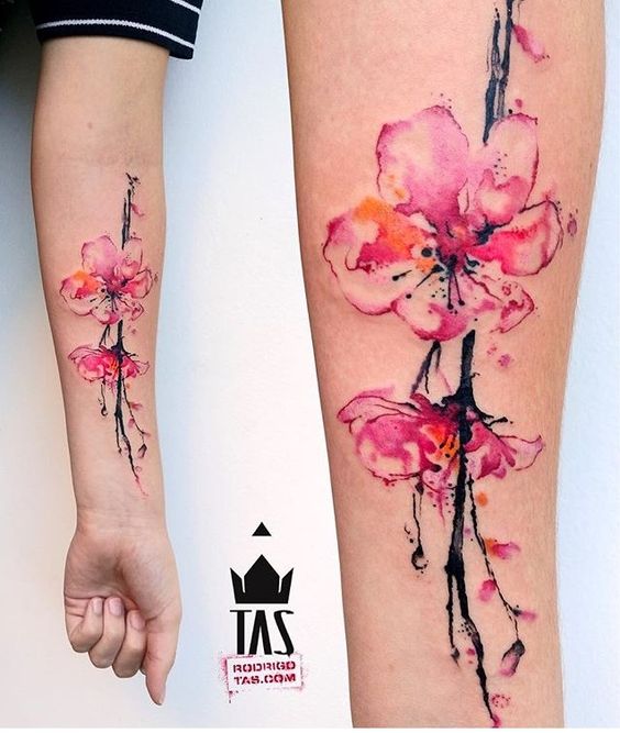 Le tatouage à l'aquarelle attire particulièrement l'attention, surtout s'il s'agit d'une image florale. Il est donc plausible et réaliste qu'aucune fleur ne soit écrasée par rapport à sakura. La palette de pastel rend la composition très tendre. Les tatouages à l'aquarelle peuvent être appliqués à n'importe quelle partie du corps, peu importe le teint.