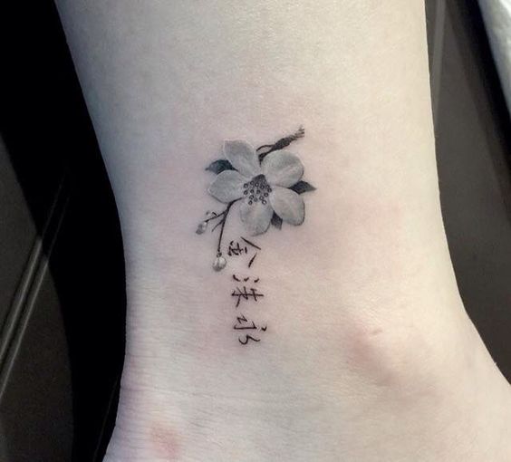 Parfois, les vrais connaisseurs de la culture japonaise appliquent un tatouage noir avec un sakura. Le tatouage en sakura noir et blanc est une couleur beaucoup moins commune. Cependant, cela ne rend pas les options plus sombres moins attrayantes. Les images Sakura avec des détails supplémentaires, tels que des caractères japonais, sont plutôt impressionnantes. Les pigments blancs soulignent de manière exquise la fragilité et la tendresse d'une fleur de sakura. Parce que les images en noir et blanc sont très souvent causées par des filles.