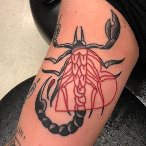 Un tatouage de scorpion minimaliste est un petit motif avec des lignes fines et claires. Un tel tatouage ne porte que l’essence de la photo, alors qu’il n’ya pas de détails inutiles. L'un des styles les plus populaires et les plus impressionnants pour les tatouages de scorpions est le réalisme. Un tel tatouage est principalement réalisé en couleur, mais a fière allure en noir et blanc. Un tatouage de scorpion utilisant des lignes épaisses, une géométrie et des boucles grossières avec des intersections est un style tribal. Cette technique de tatouage à l’image d’un scorpion est très populaire depuis plusieurs décennies. Regarde grand tatouage de scorpion masculin dans le style de poubelle polka. C'est un style audacieux, lumineux et contrasté, qui utilise deux couleurs: le rouge et le noir.