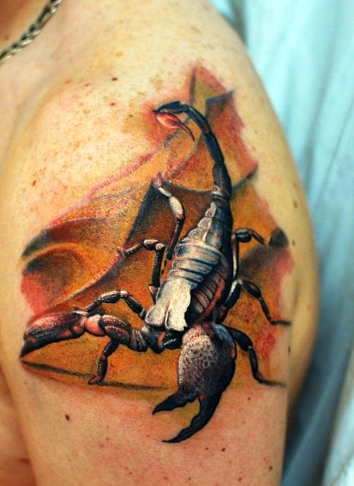 Si vous êtes une personne courageuse et belliqueuse, un tatouage avec une image d'un scorpion vous convient.