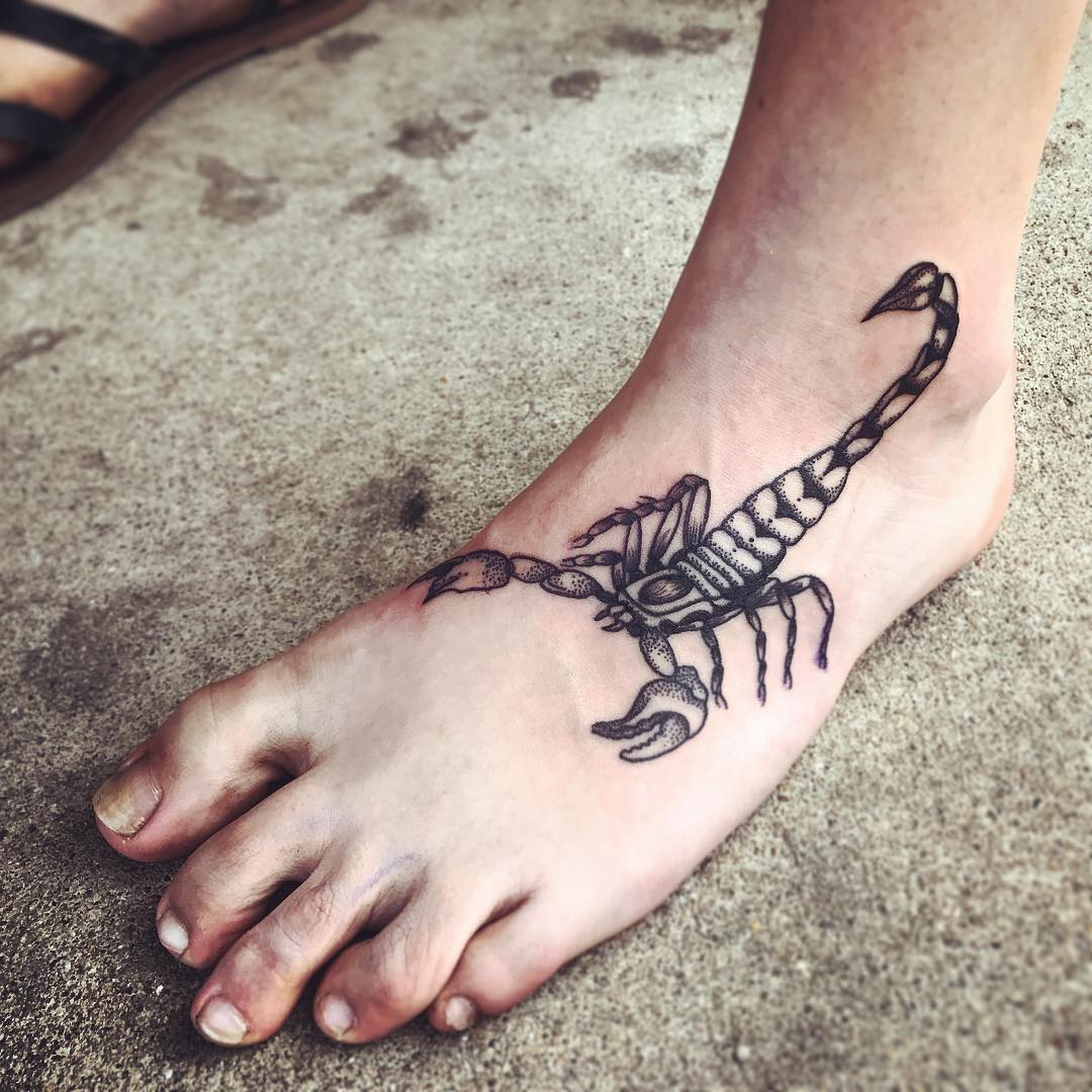 Un tatouage représentant un insecte tel qu'un scorpion a plusieurs significations. La variété des interprétations d'un tel tatouage dépend du fait que, pendant de nombreux siècles, différents peuples ont donné au scorpion des caractéristiques différentes. En raison de sa morsure mortelle dans de nombreuses nationalités, le scorpion est associé à la mort. Mais en même temps, beaucoup de gens considèrent cet insecte comme une personnification de la force, du courage, de l'endurance et de la vengeance. En outre, parmi de nombreuses nationalités, le scorpion sert de talisman et est un symbole de la justice.