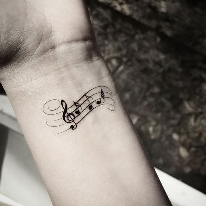 Les hommes et les femmes sont très populaires avec un tatouage miniature clé de sol. Ils essaient de placer une telle image miniature sur le doigt, derrière l'oreille ou le cou. Une mini image d'une portée avec des notes et une clé de sol au poignet ou à la cheville sera attrayante. Dans ce cas, l'image peut être réalisée sous la forme d'un bracelet original.