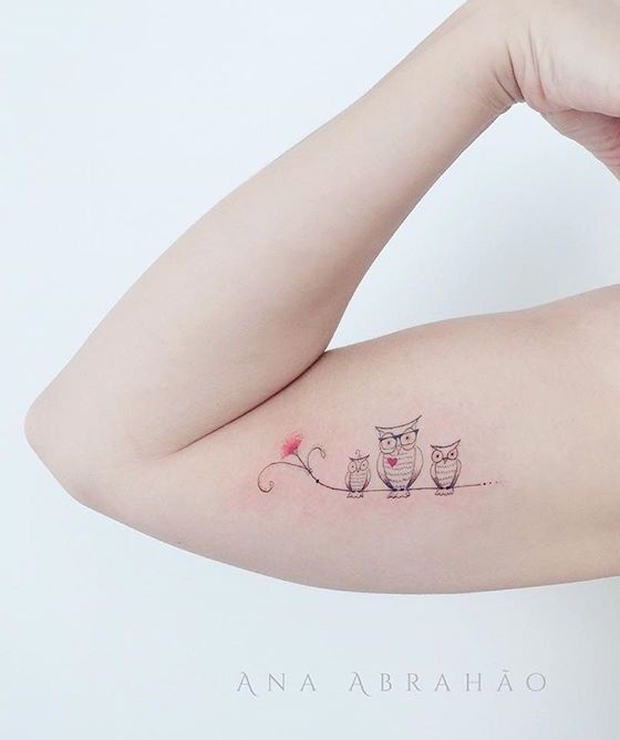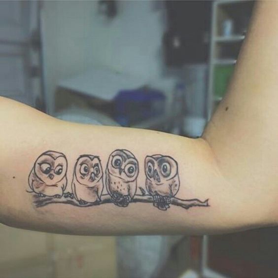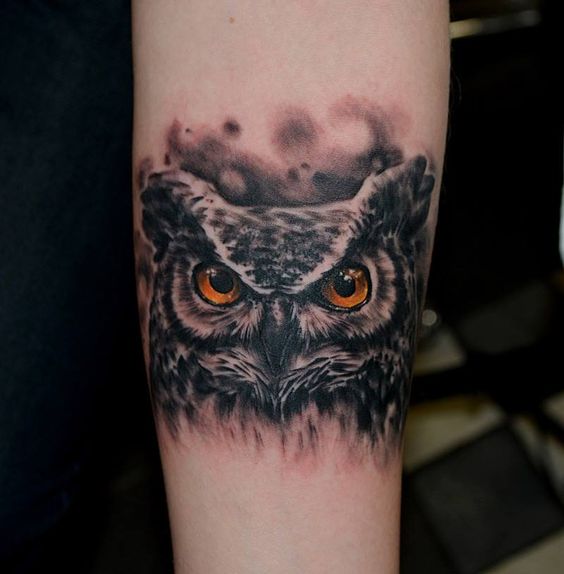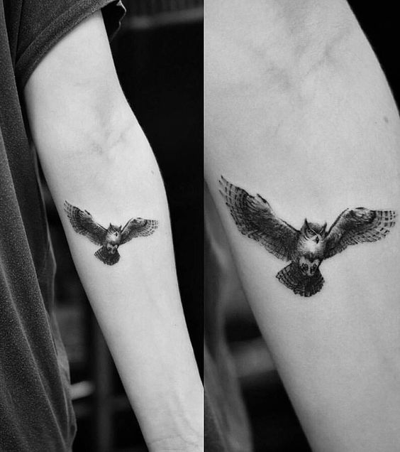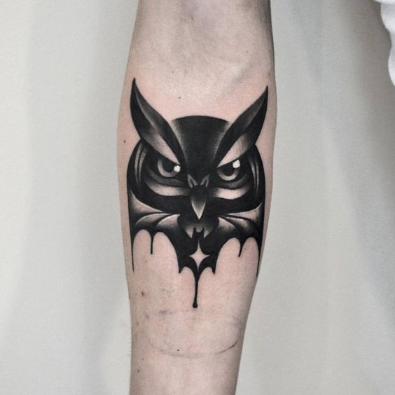 Très souvent, des personnes judicieuses et déterminées se font tatouer avec un hibou sur le bras. Les jeunes filles préfèrent également voir un hibou élégant sur leur main, qu’elles associent à un style de vie amusant la nuit. Tous ceux qui aiment les énigmes, les surprises et les découvertes étonnantes peuvent voir un tatouage de hibou. Cela ne veut pas dire qu’il n’est pas douloureux de faire un tatouage avec un hibou sur le bras, mais c’est néanmoins là que la peau est moins sensible aux manipulations externes de l’aiguille. Si le tatouage avec un hibou est minuscule et est situé sur l'avant-bras, il peut toujours être caché des yeux inutiles sous les manches des vêtements.