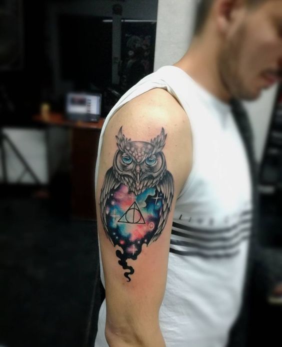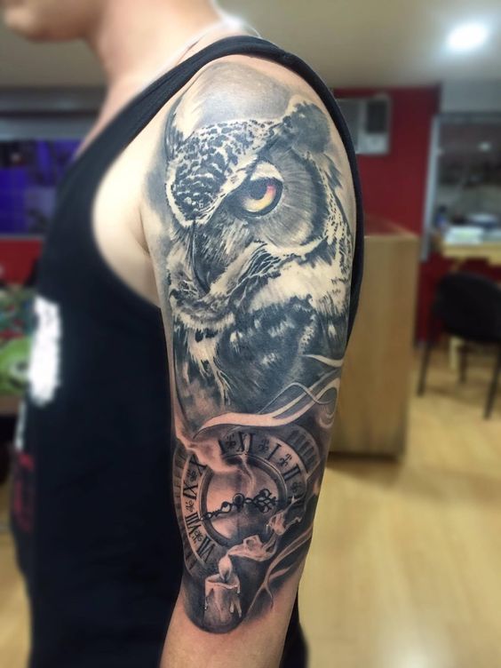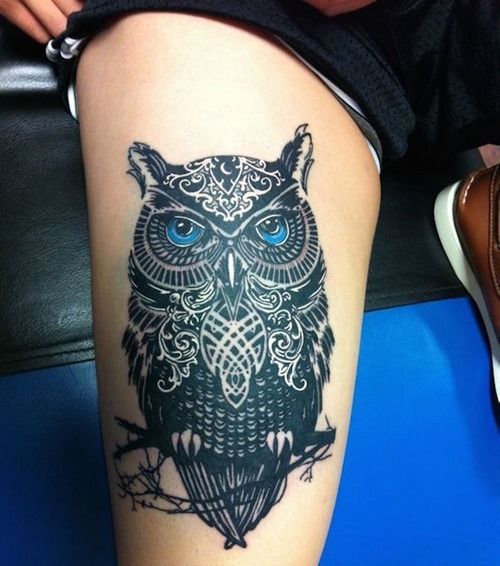 Comme le hibou est une espèce d'oiseaux nocturnes, le tatouage du hibou dans le passé lointain était associé au mysticisme, à la magie occulte, à l'existence extraterrestre et à l'immortalité. Les Celtes croyaient que le hibou était un messager de la mort, et les Chinois ont généralement ignoré l'image d'un hibou sur le corps. Mais tout n'est pas si mauvais. Un tatouage avec hibou présente également des aspects positifs, car dans de nombreux pays, un hibou est un symbole de sagesse. Rappelez-vous les dessins animés soviétiques, où le hibou est le personnage le plus intelligent, et dans les dessins animés de Disney, les hiboux sont des oiseaux magiques et compétents. Tout le monde sait que le hibou voit la nuit dans le noir et que cette capacité peut donc être associée en toute sécurité aux capacités du voyant. Bien sûr, dans la foi chrétienne, l’image du hibou est aujourd’hui interprétée comme de la sorcellerie, un manque de foi et la présence d’un aveuglement spirituel. La signification directe d'un tatouage de hibou dépend également de l'emplacement. Des éléments de tatouage supplémentaires associés affectent également l'interprétation. Vous voyez, l'interprétation de l'image de la chouette est tellement opposée qu'il est important de faire attention à l'endroit où le tatouage de la chouette et la composition dans son ensemble sont appliqués.