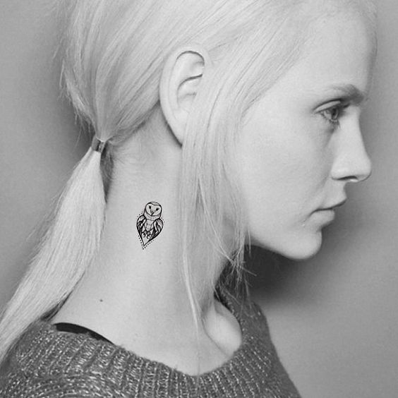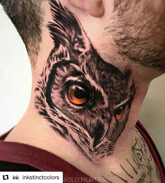Les tatouages de hibou semblent assez impressionnants sur le cou des hommes et des femmes. Obtenir un tatouage sur votre cou est une étape sérieuse, surtout si le tatouage est grand. Les femmes font rarement des tatouages sur cette partie du corps, car elles sont difficiles à cacher. L'image féminine d'un hibou sur le cou a souvent l'air simple et concise. Si néanmoins une femme en décide ainsi, elle choisit très souvent un tatouage à la manière du minimalisme, qui est situé de manière à pouvoir toujours être caché avec des cheveux ou des vêtements à col haut. Les hommes, au contraire, choisissent des tatouages en forme de hibou, de couleurs et de tailles assez grandes. Mais ces tatouages sont tout simplement incroyables.