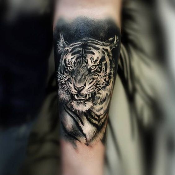 Chaque représentant d'une forte moitié de l'humanité tente d'attirer l'attention des femmes. On trouve souvent des tatouages de tigre sur les bras et la poitrine des hommes. C'est cette bête importante qui caractérise son propriétaire. Les hommes avec cette image montrent aux autres qu’ils peuvent facilement se tenir debout non seulement pour eux-mêmes, mais également pour leurs proches et leurs proches. Les tatouages de tigre sont effectués dans diverses techniques avec des éléments supplémentaires. Par exemple, un tigre avec un sourire ou un prédateur se léchant la patte, ainsi qu'un tigre accroupi. Ainsi, on peut deviner quel personnage a une personne et à quoi s'attendre de sa part.