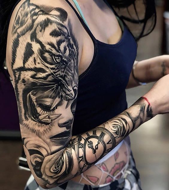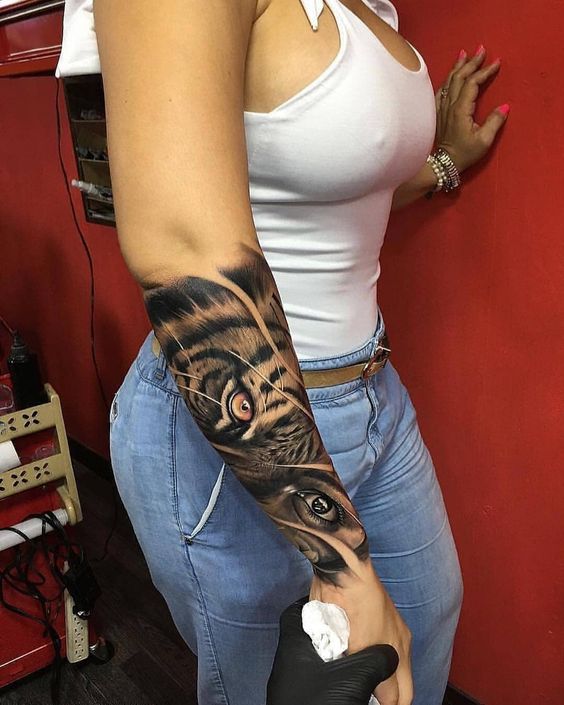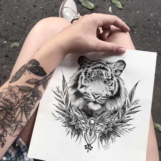La plupart des femmes préfèrent les petits tatouages. Certaines le font spécialement pour leur partenaire, d'autres au contraire tentent de prouver au sexe opposé qu'elles sont des femmes fortes et courageuses. C'est donc le tigre qui est le dessin fréquent que vous retrouverez sur le corps de la femme. Les tatouages en forme de jeune tigre mettent en valeur le caractère fragile et vulnérable de la fille, ainsi que les relations entre mère et petit enfant. Aussi un tatouage très célèbre est un tigre avec un dragon.Cet ornement symbolise le signe Yin-Yang. C'est-à-dire le féminin. Tigre est une désignation d'une femme ou d'une fille.