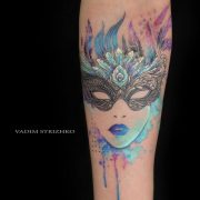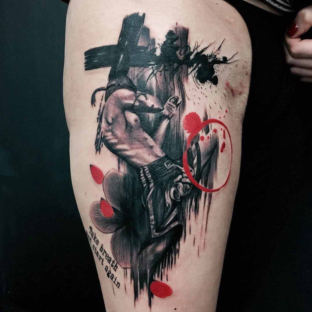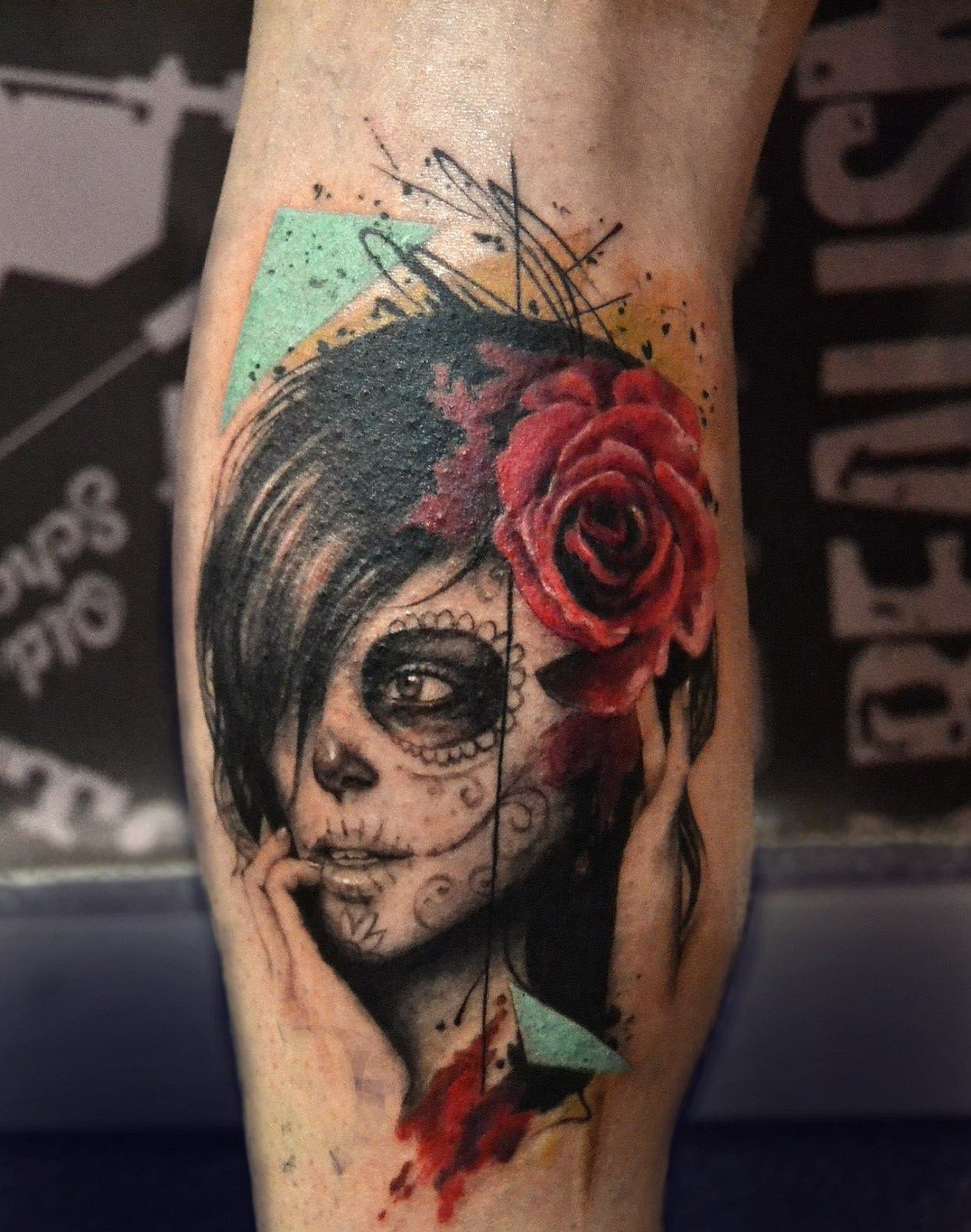 Si vous le souhaitez, un tatouage polka polka peut être combiné avec un autre style. L'option la plus appropriée serait le réalisme. Mais gardez à l'esprit que les portraits et les natures mortes à la jonction de ces directions peuvent être vraiment terrifiants et effrayants.