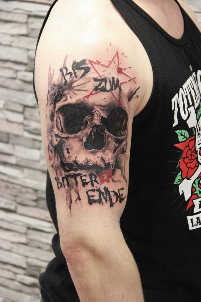 Comme vous pouvez le constater, les tatouages polka peuvent être complètement différents. Ce ne sont pas seulement du sang, des armes ou des crânes, mais aussi des portraits de personnalités célèbres, de personnages préférés et bien plus encore. Grâce à cela, le style est devenu unique et se distingue toujours par son originalité. Il est de plus en plus choisi par les hommes mais également par les femmes.