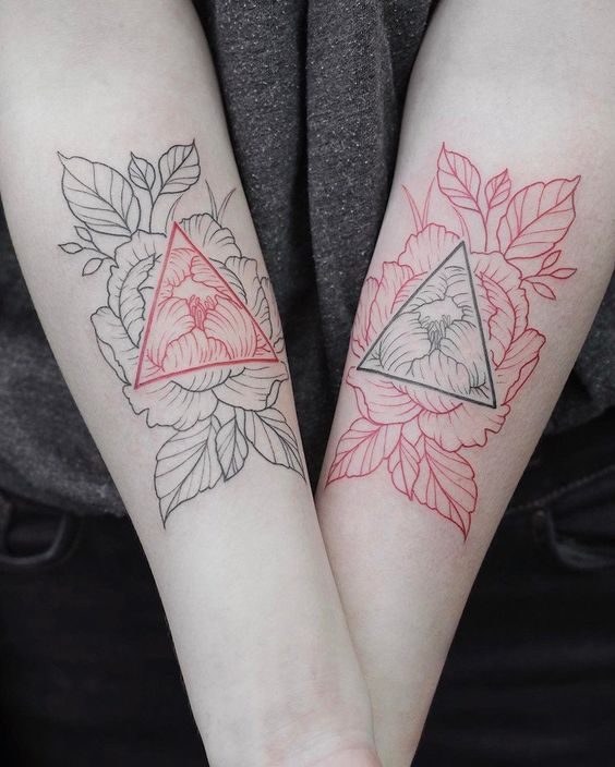 Tatouage de deux triangles: dessins en paires pour deux moitiés