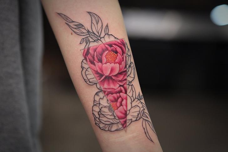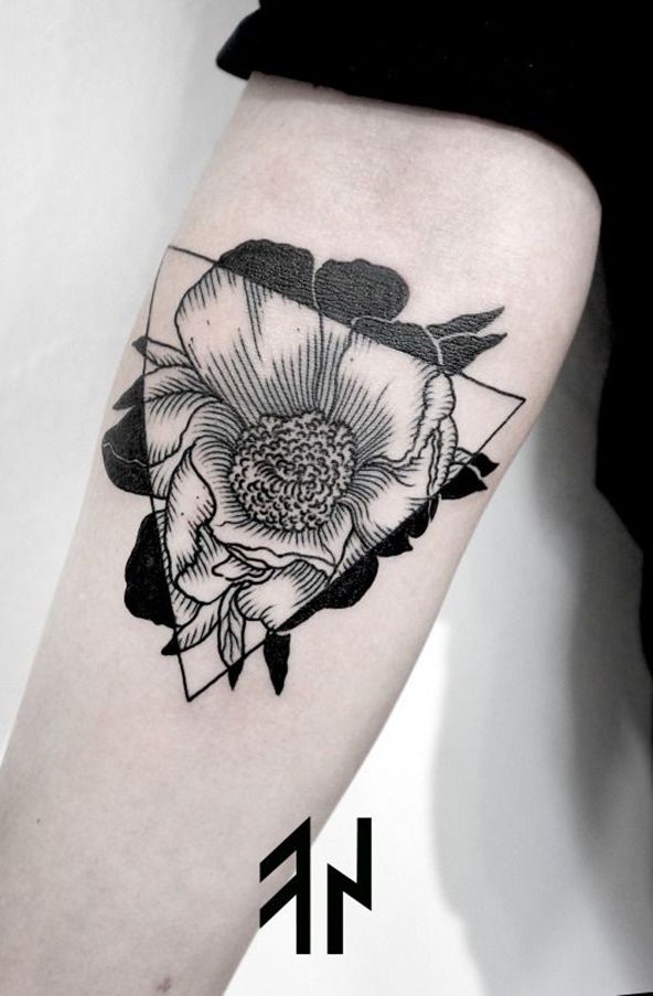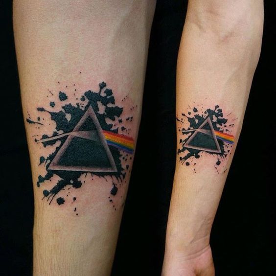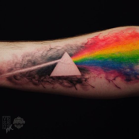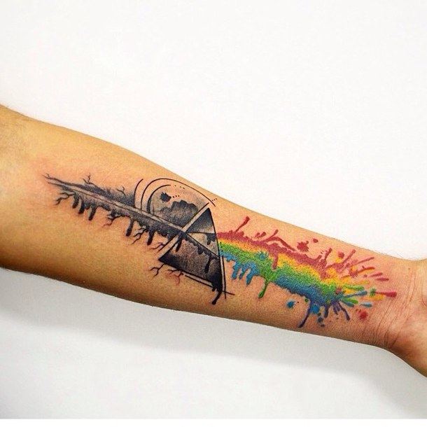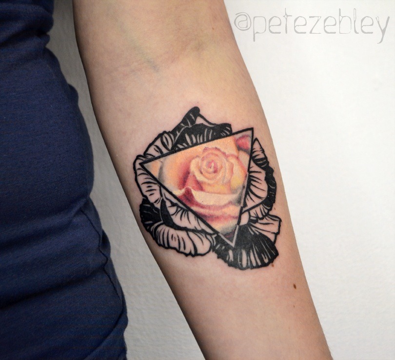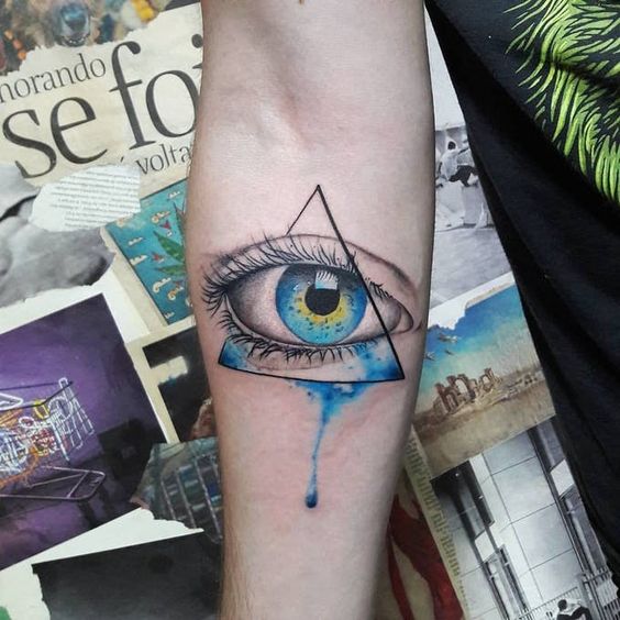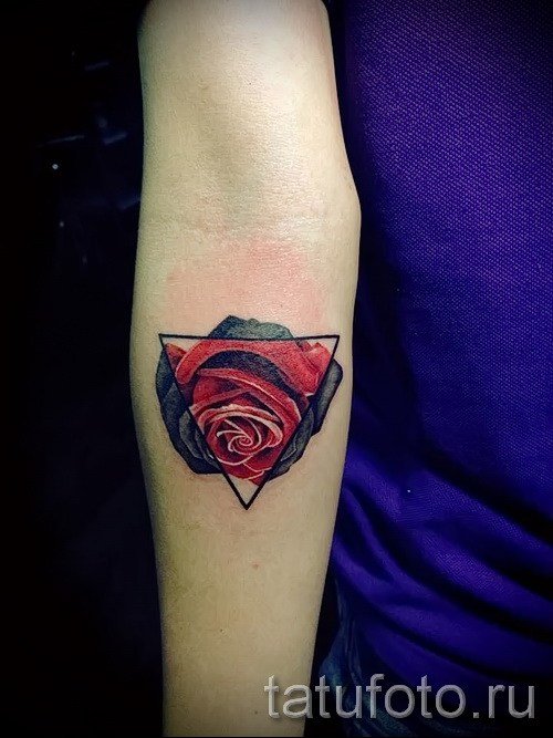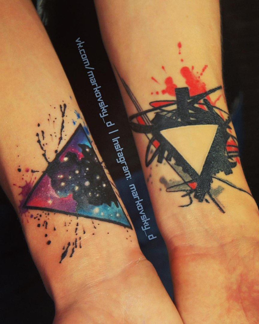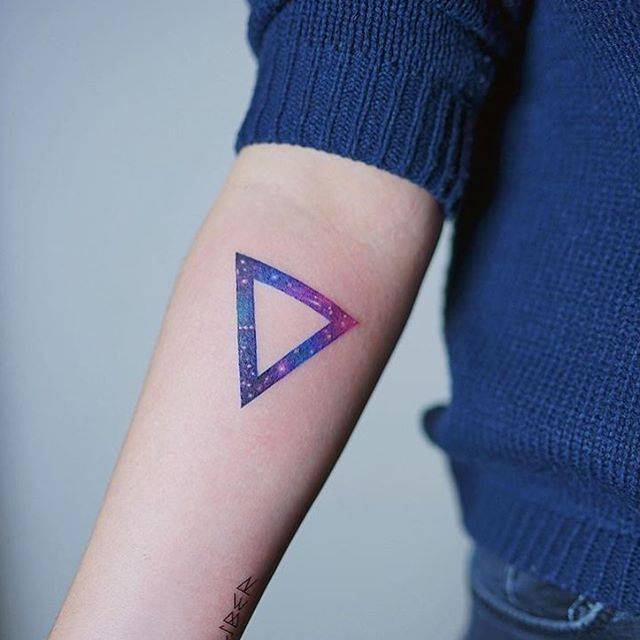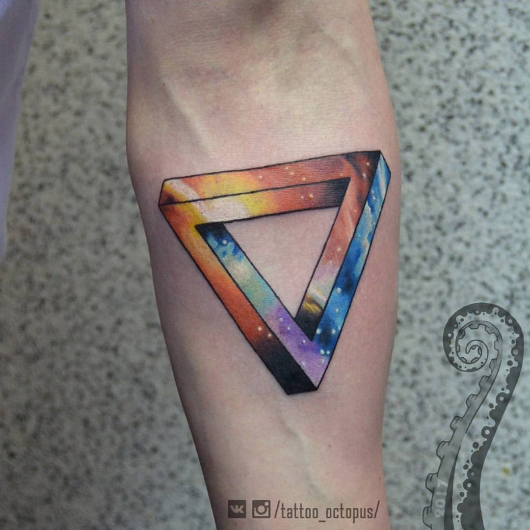 Tatouage triangle de couleur et noir sur le bras: de vrais exemples d'art