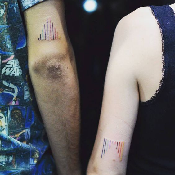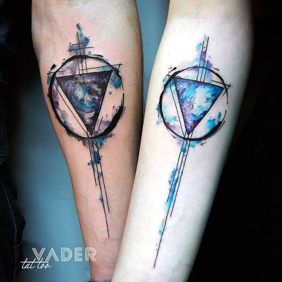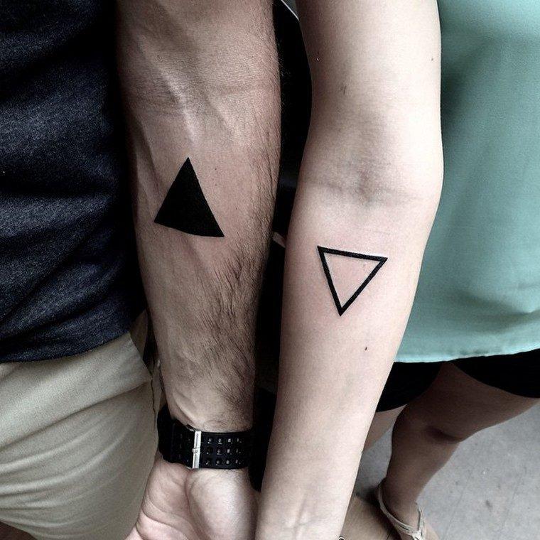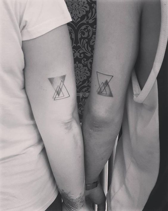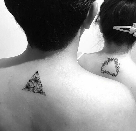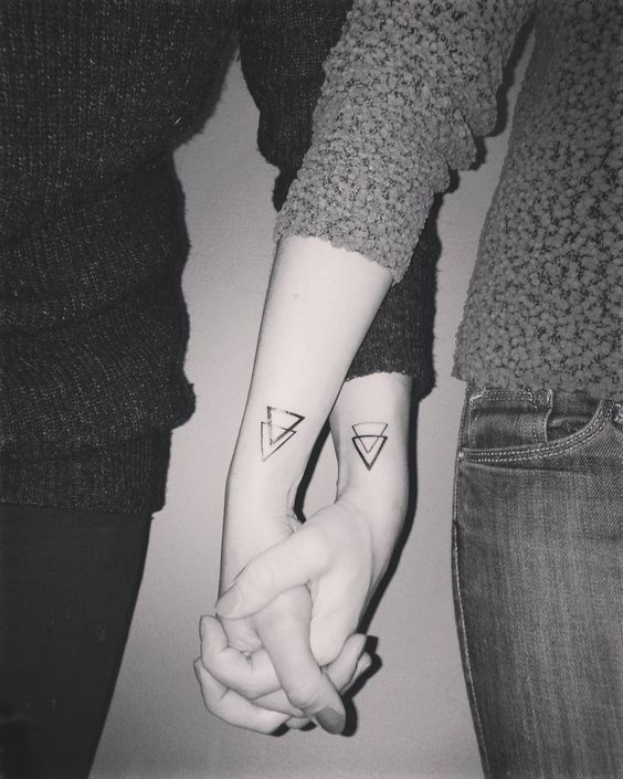 Les hommes considèrent le tatouage en triangle, fait en tandem avec la seconde moitié, symbole du pouvoir, de la beauté et de l'esprit. Un tatouage en paire symbolise la fusion des âmes en un tout et l'unité des relations. Certains détails dans les tatouages appariés indiquent qu'il existe un certain fil inextricable entre les amants qui soutient la relation. Les images inversées des triangles indiquent que les deux personnes se soutiennent mutuellement. En général, toutes les images en paire sont d'une certaine nature, y compris les ornements supplémentaires du triangle.